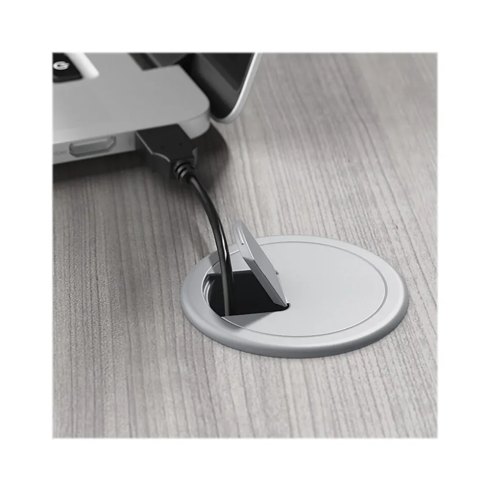 - Desktop includes a built-in wire management grommet to keep cords and cables out of the way
