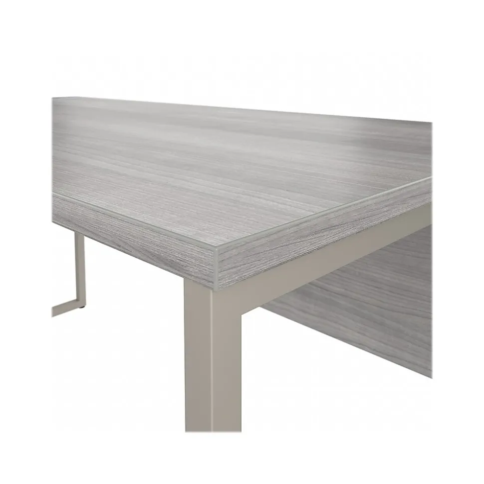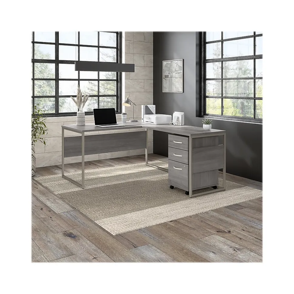 The Bush Business Furniture Hybrid 60″W x 30″D computer table desk blends a durable work surface with sturdy metal legs to offer a stylish, long-lasting solution for the modern professional. Tackle your next project or assignment with a computer, books, paperwork, and more on a desktop that supports up to 200 lbs. Two built-in wire management grommets keep cords and cables in order, so your work area remains free from unnecessary clutter. The computer desk’s open leg design and finished privacy panel allow it to look great facing any direction in a home or professional office environment. Find the perfect look for your space with five contemporary finish options: black walnut, modern hickory, platinum gray, storm gray, and white. This modern desk has been meticulously tested to meet or exceed ANSI/BIFMA quality standards for safety, durability, and performance and is backed by the Bush Business Furniture 10-year manufacturer warranty. See the full Hybrid collection for coordinating items to enhance your workspace as needed, including file cabinets, bookcases, and storage cabinets (coordinating items sold separately). American-made with US and imported parts.