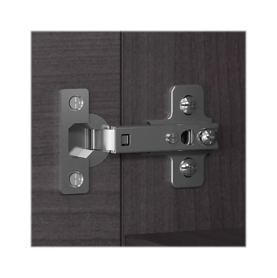Organize paperwork and show off your favorite pictures, awards, and decorations with the Bush Business Furniture Office 500 lateral file cabinet and hutch. This file cabinet with hutch is perfect for maintaining an organized workspace while showcasing the style and personality of today’s professional. Two file drawers open on smooth full-extension ball bearing slides for an easy reach to legal-, letter-, and A4-size paperwork. A single lock secures both drawers to protect files that contain sensitive information. The bookcase hutch attaches to the top of the file cabinet, adding two open shelves that are great for storing books or displaying your favorite pictures, awards, and decorations. An elevated two-door storage cabinet conceals the reference materials and supplies you want kept in order but out of sight. This tall bookcase hutch with drawers is tested to meet ANSI/BIFMA standards for safety and performance and is backed by a 10-year warranty. American-made with US and imported parts.