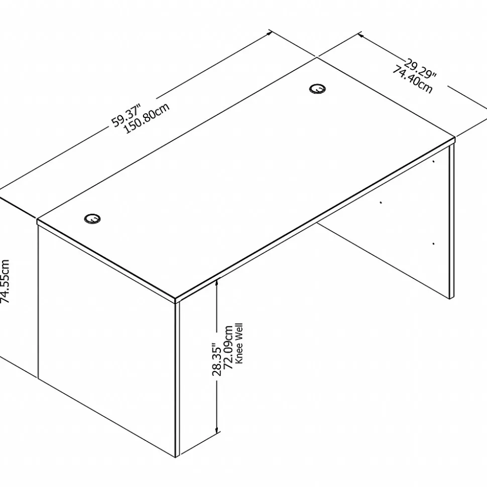 - 60″W x 30″D surface offers space to spread out and integrated cable management to conceal computer cords