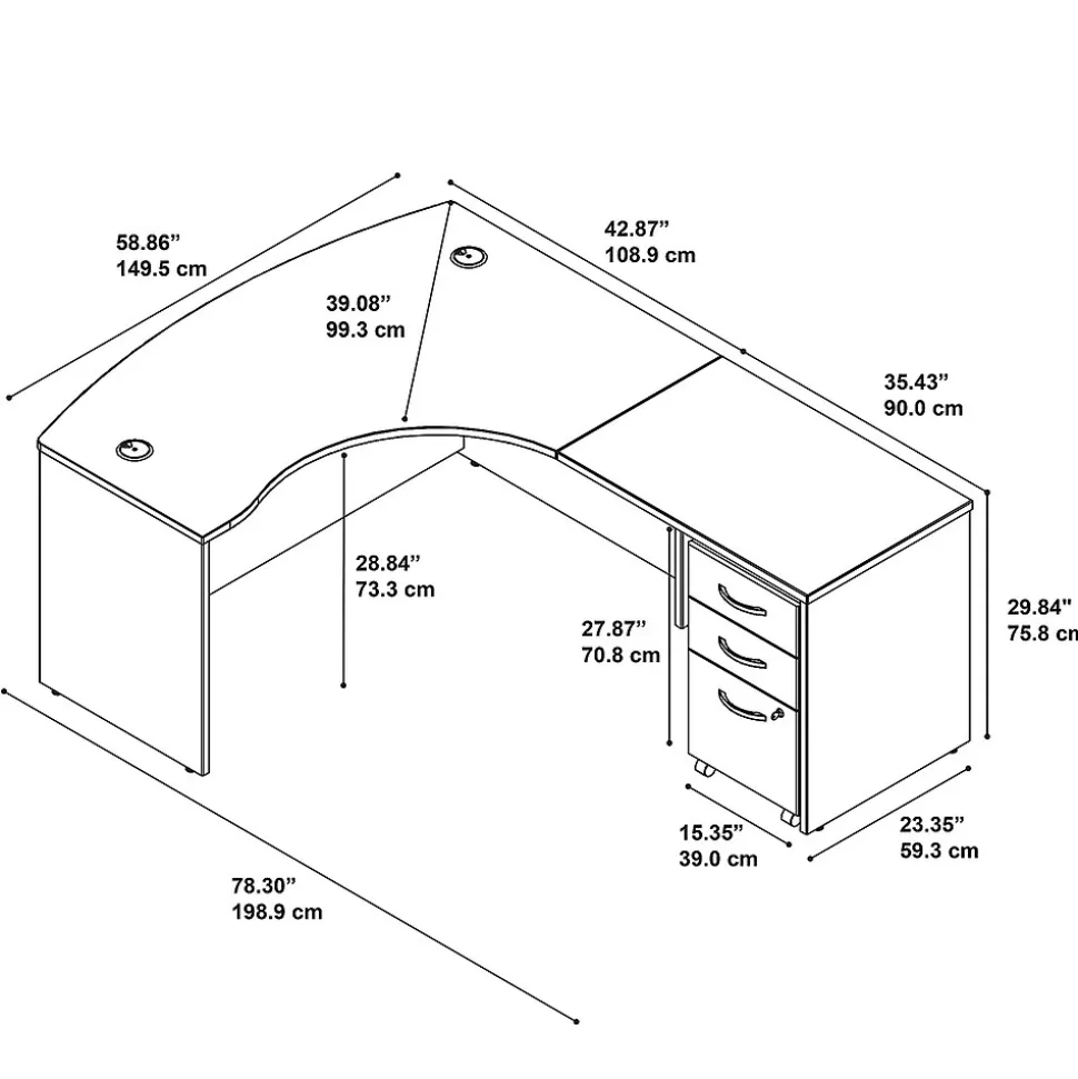 Work with the convenience you want and the durability you need. This Bush Business Furniture Westfield Right Handed L Shaped Desk makes the most of your office space with a clever construction and user-friendly features. Attractive and inviting, the Bow Front design gives guests the space they need to pull up chairs and collaborate. Spread out on the L Shaped Desk and feed your cables through wire management grommets in the surface to keep them concealed. The thermally fused laminate finish and sturdy construction provide long-lasting professional quality. Guide the Mobile File Cabinet throughout your office or store it under the L Shaped Desk to save space. Enjoy easy access to paperwork with a full-extension file drawer gliding on smooth ball bearing slides. Westfield offers endless layout options and 7 finishes. Backed by a 10 Year Warranty. American made with U.S. and imported parts.
