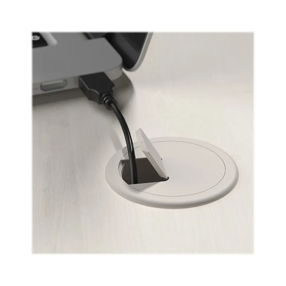- Desktop includes three built-in wire management grommets to keep cords and cables out of the way