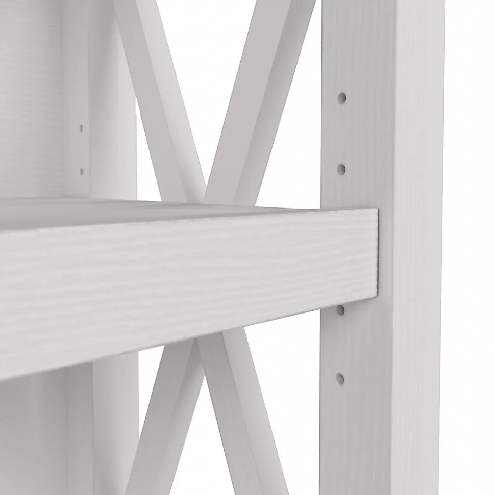 The Bush Furniture Key West small two-shelf bookcase offers a practical storage and display solution that gives your home a touch of casual style. This small bookshelf features a compact, versatile design that makes it a perfect choice for use in a home office, living room, entryway, or virtually any other residential space. One fixed shelf and one adjustable shelf accommodate books, reference materials, and decorations of various sizes. Each shelf supports up to 35 lbs., so you can store and display larger items with confidence. A post leg design and X-pattern accents convey a casual appearance that works well with cottage, coastal, and modern farmhouse style. This small bookcase has been tested to meet ANSI/SOHO quality standards for safety and performance and is backed by the Bush Furniture 1-year manufacturer warranty. See the full collection for coordinating items available.