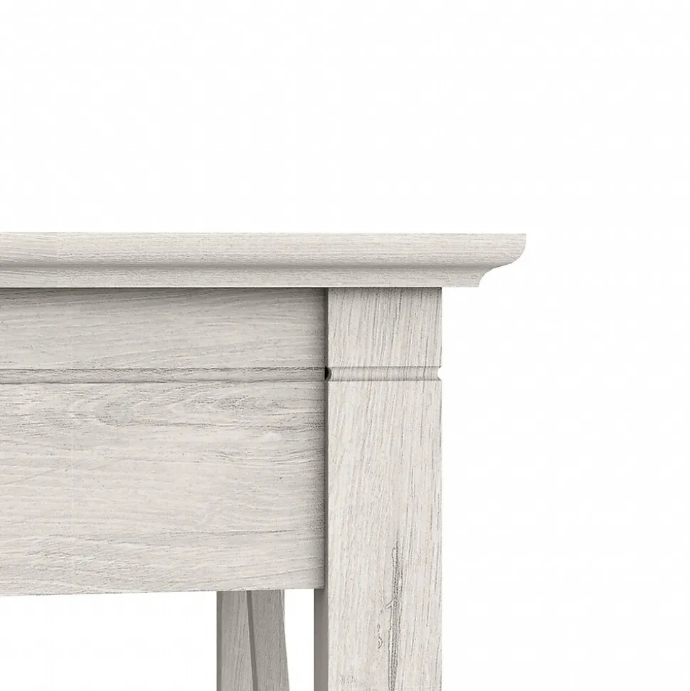 The Bush Furniture Key West L-shaped desk with mid-back tufted office chair offers a practical personal workspace with relaxed farmhouse style. With its practical design and easygoing style, L-shaped desk and chair set offers a perfect workspace solution for home offices. Save space in compact areas by placing the L-desk in a corner or make use of the finished back to take a prominent position in the middle of the room. The durable work surface is spacious enough to spread out with a computer, paperwork, and more while supporting up to 200 lbs. The mid-back office chair, highlighted by its button-tufted upholstery and scrolled backrest, provides a natural complement to Key West’s easygoing style. Foam cushioning gives the seat a medium-firm feel while the swivel chair’s height and tilt tension can be easily adjusted to meet your own personal preferences.