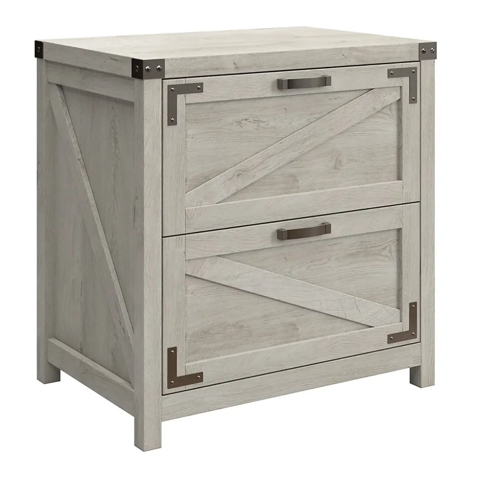 The Bush Furniture Knoxville 2 Drawer Lateral File Cabinet offers a practical storage solution with appealing modern farmhouse style. Take advantage of two large file drawers to keep letter, legal and A4-size paperwork organized in your home office. Drawers support up to 50 pounds of materials each and are designed to open one at a time for maximum stability on any surface. Full-extension ball bearing slides provide an effortless reach to contents, even those all the way at the back. The 2 Drawer File Cabinet matches the height of Knoxville’s 48W Writing Desk and 60W L Shaped Desk to create an extended work surface when placed side by side. This two drawer lateral filing cabinet has been tested to meet ANSI/SOHO standards for safety and performance and is backed by a 3 Year Manufacturer’s Warranty. See the full collection for coordinating items available.