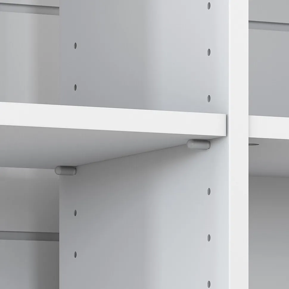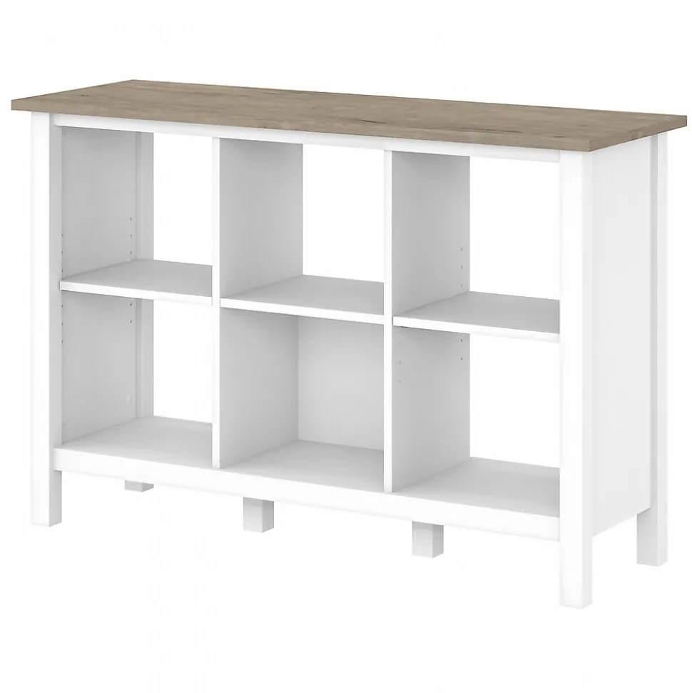 The Bush Furniture Mayfield six-cube bookcase combines casual looks with a practical design that makes showing off your favorite books and decorations easy. Organize your personal library or display pictures and decorations with cube storage that suits your casual home. Highlighted by its relaxed modern farmhouse style, the Bush Furniture Mayfield six-cube bookcase offers a design that’s versatile enough for use in virtually any living space. One fixed shelf in the center provides stability while an adjustable shelf on either side makes it easy to store items of various sizes. Each shelf supports up to 30 pounds, so showing off your collection of paperback and hardcover books or brightening up the room with plants and larger decor is no problem. The design is finished on all sides for flexible placement in a home office, living room or any other residential area where convenient storage is needed. This six-cube organizer is tested to meet ANSI/SOHO quality standards for safety and performance and is backed by a 1-year warranty.