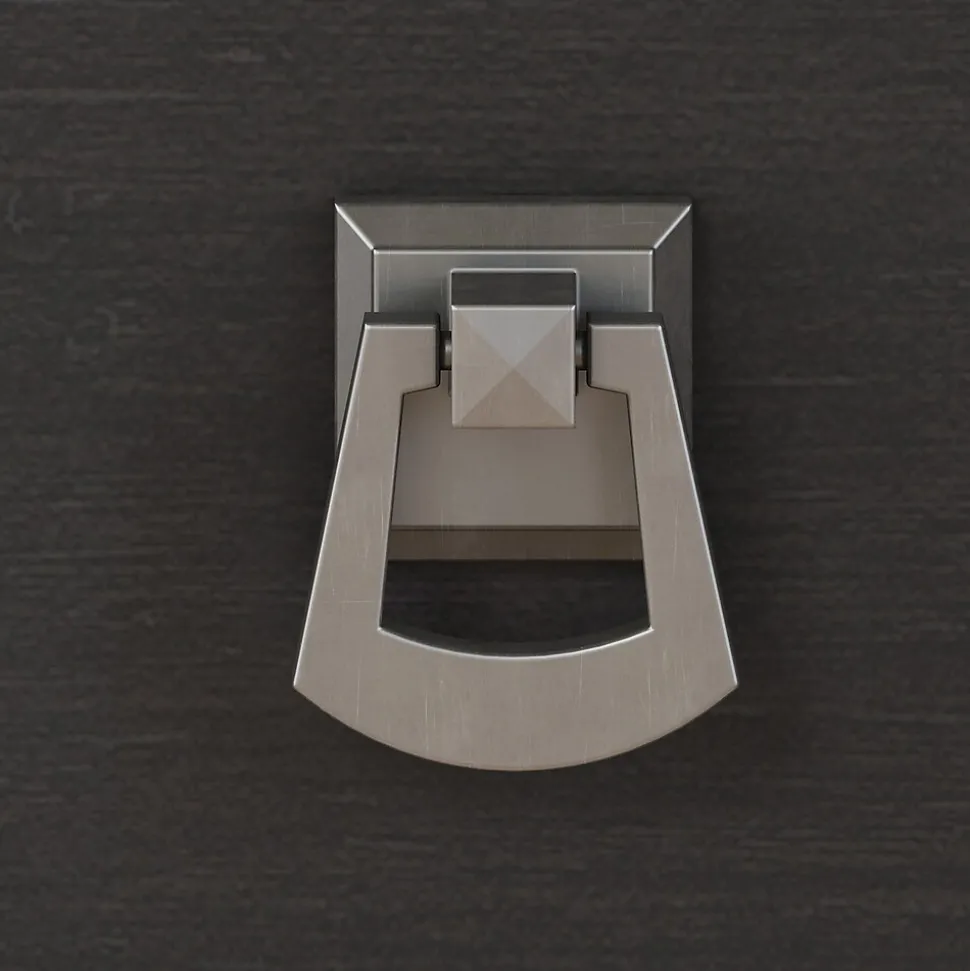 - Elegant metal drop pull hardware finished in Tumbled Pewter