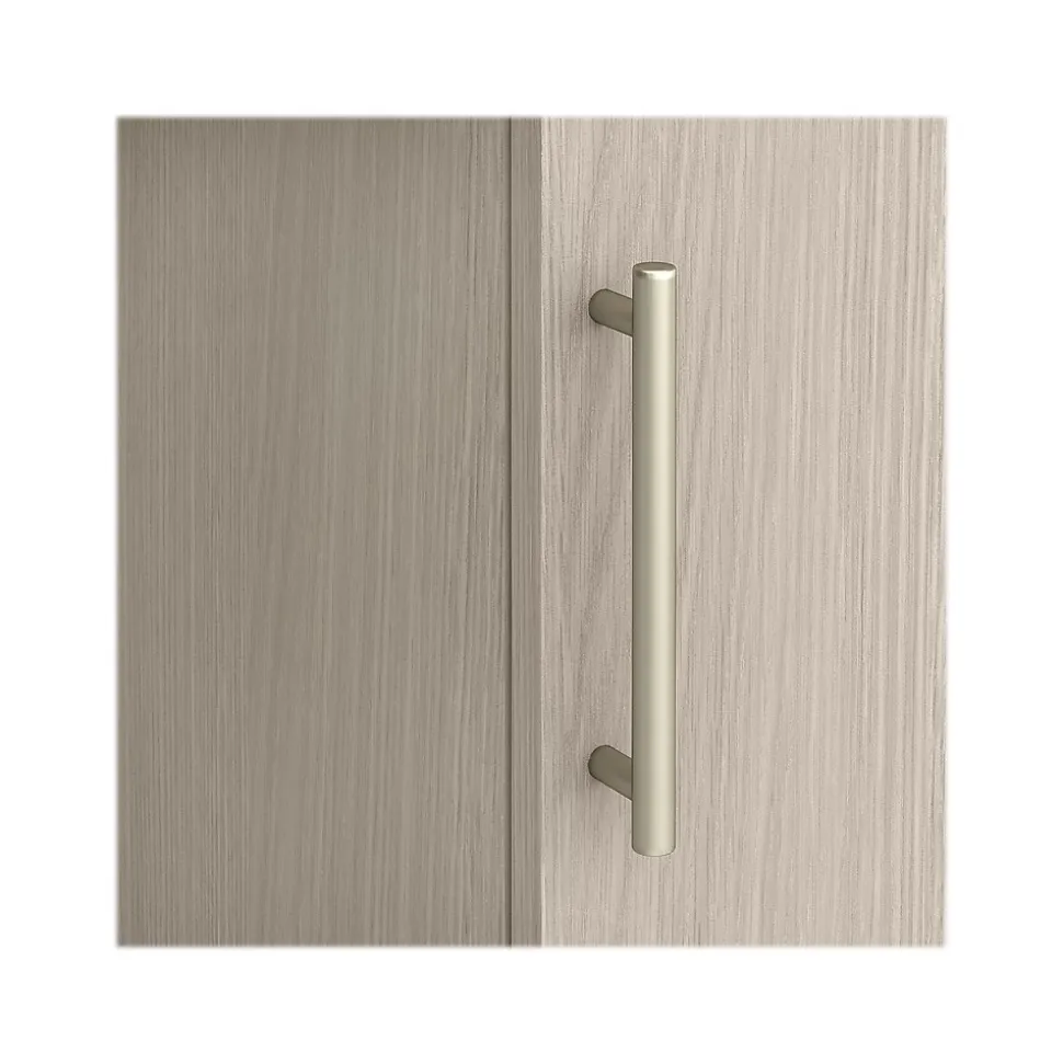 - Vertical storage cabinet contains one adjustable shelf for storing items of various sizes