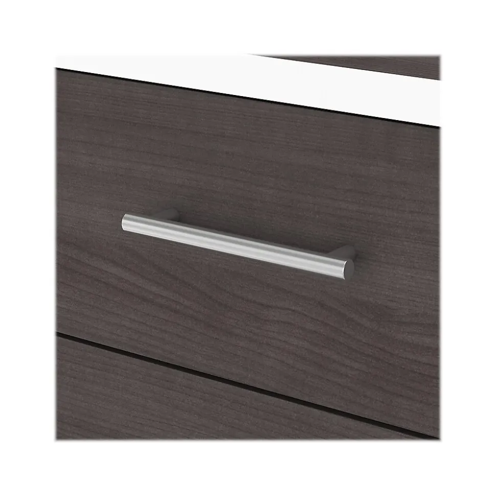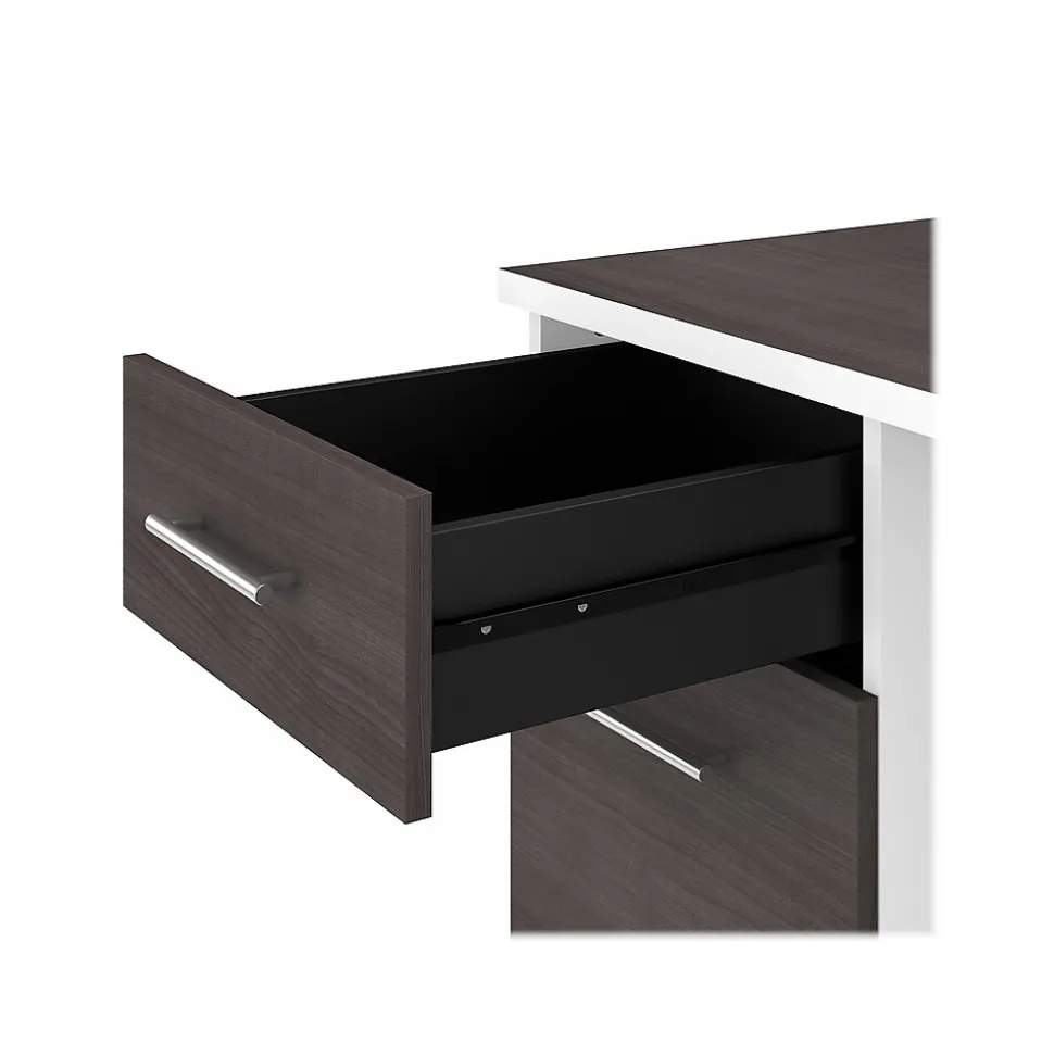 An expansive work surface and built-in storage make the Bush Furniture Somerset 72″W computer desk with drawers a perfect choice for your home office. The spacious desktop offers plenty of room to spread out with a computer and paperwork and includes a wire management grommet to keep cords and cables secure and out of sight. The desk’s file drawer opens on full-extension ball bearing slides for easy access to legal- and letter-size documents, while a box drawer keeps the office supplies and utensils you need close by. A finished back side allows the desk to look great no matter where it’s positioned in the room. The computer desk can also be used with the Somerset 42″W three-position sit to stand return (sold separately) to create an ergonomic height-adjustable workspace. The desk with drawers meets or exceeds ANSI/SOHO standards for safety and performance and is backed by a 6-year manufacturer limited warranty.