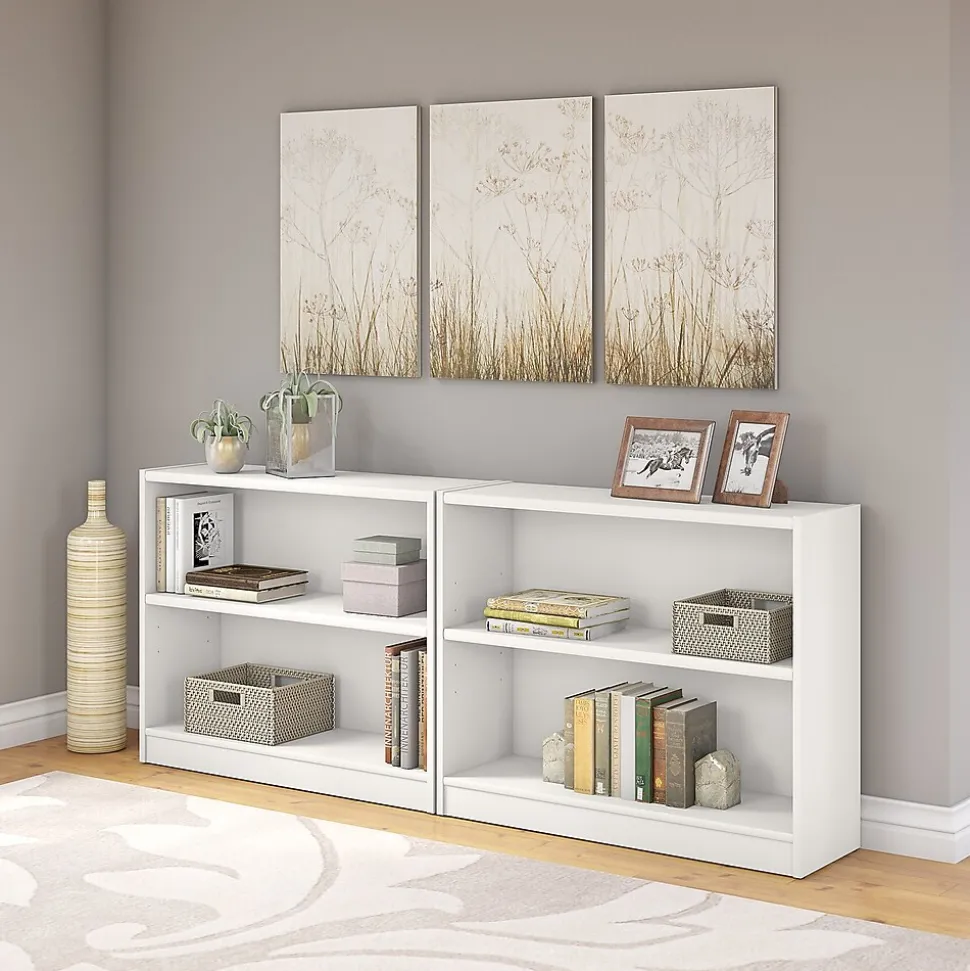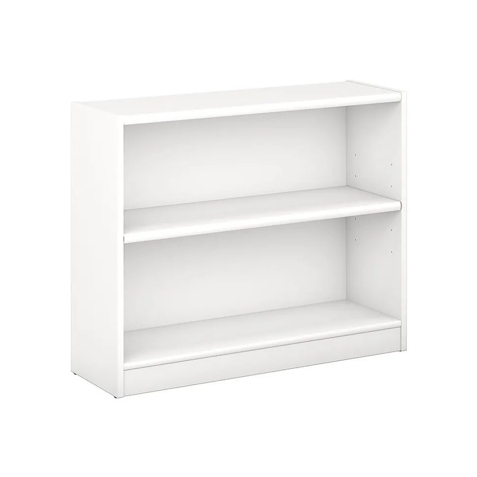 The Bush Furniture Universal 2 Shelf Bookcase features one adjustable shelf and a fixed bottom shelf for added stability and storage flexibility. Personalize your home or office with books, photos, plants and decorative accents with sturdy 1 inch thick shelves. Design extended wall storage, or place coordinating bookcases anywhere in your interior with seven finishes and three height options. Family-friendly wall attachment hardware included. You’ll find many uses for this heavy-duty small bookcase in your home office, bedroom or small business. Solidly constructed, the 2 Shelf Bookcase meets ANSI/BIFMA standards for performance and safety. Backed by a 1 Year Warranty.