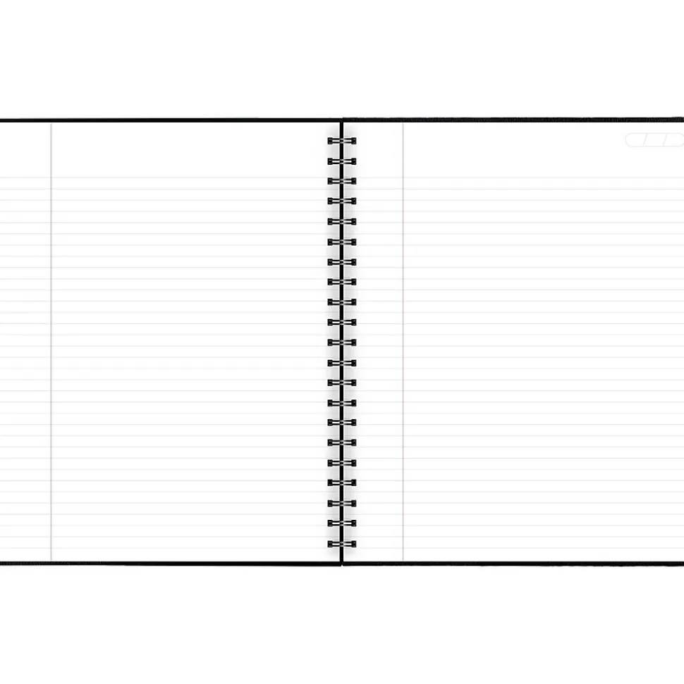 - Black, hardbound linen covers with twin wire binding protect notes and provide professional appeal. 8 7/8″ x 11″ page size