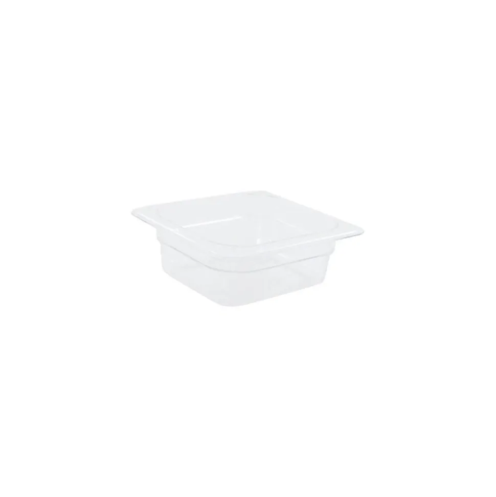 Ensure efficiency while increasing food safety in your establishment with this Cambro 62CW135 Camwear 2 1/2″ deep clear 1/6 size food pan! Built to withstand temperatures from -40 to 210degrees Fahrenheit, and made of virtually-unbreakable Camwear polycarbonate, this food pan is designed to last even in the toughest commercial kitchens. This pan won’t crack, bend, or dent. Use it to store, transport, and serve all from the same pan – the clear complexion offers an easy-to-see option, while molded-in graduations in standard and metric measurements promote easy inventory management. A uniform 1/2″ flange on this pan ensures a smooth fit in prep tables and food bars while a textured bottom resists scratching under everyday conditions. Inside the pan, a non-stick, smooth interior surface promotes easy cleaning while increasing yields, and a large radius bottom limits food waste. This pan won’t react to food, minimizing the risk of a potentially hazardous chemical or acidic reaction. Plus, tests prove that Camwear food pans keep product as cold as stainless steel pans, with less condensation. This means your fresh produce stays fresher, longer, saving you money in the long run! When not in use, this pan stacks neatly without wedging or sticking to other pans.