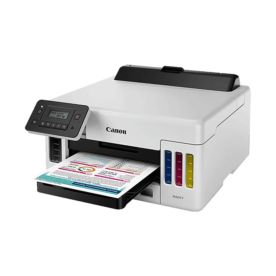 Designed for home offices and small businesses, the Canon MAXIFY GX5020 delivers high-quality, low-cost printing, and outstanding wireless connectivity in a compact size. Comes with a full set of ink and a 3-year or 80000-page limited warranty, so you can print with confidence. Canon MAXIFY GX5020 is easy to set up and maintain and offers great media versatility to print on a variety of media types and sizes, including labels, envelopes, and banners up to 8.5″ x 47″. Produce crisp, colorful documents quickly and cost-effectively thanks to fast print speeds and a high quality four-color pigment-based ink system. Keep printing with a large combined plain paper capacity of 350 sheets. Easily connect and print through high-speed USB, Ethernet, or wirelessly from computers or mobile devices.