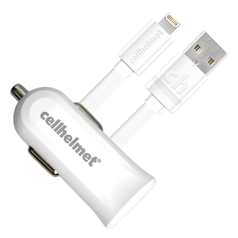 cellhelmet 2.4-Amp Single-USB Car Charger with USB-A to Lightning Flat Cable, 3 Feet (CAR-2.4/1+F-LIGHT-3-W)