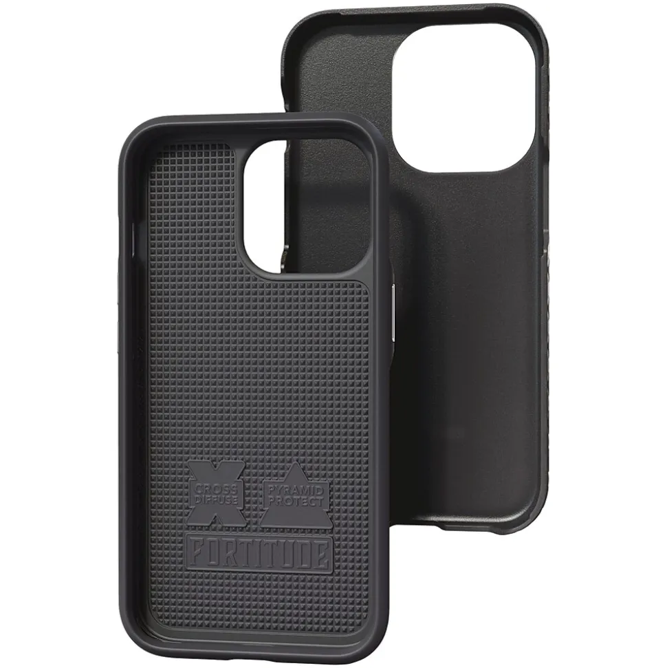 Slim design, ideal protection, and patented technology all add up to the experience of the Onyx Black Fortitude Series for iPhone 13 Pro case from cellhelmet. There are many options when protecting your phone, Fortitude beats them all. Specialized Thermoplastic Polyurethane (TPU) encases the phone with durable protection, while adding patented Pyramid Protect and Cross Diffuse drop-protect technologies. This impact-certified cell phone case not only protects the phone, but helps you not drop it in the first place, through No Slip Grip, providing a superior feel and ensuring you hold on tight. Finally, cellhelmet has packed all of this awesome action into a slim, streamlined profile that will easily fit in your pocket or purse. Climb that mountain, overcome those obstacles, and breath in the fresh air of the Fortitude Series case!