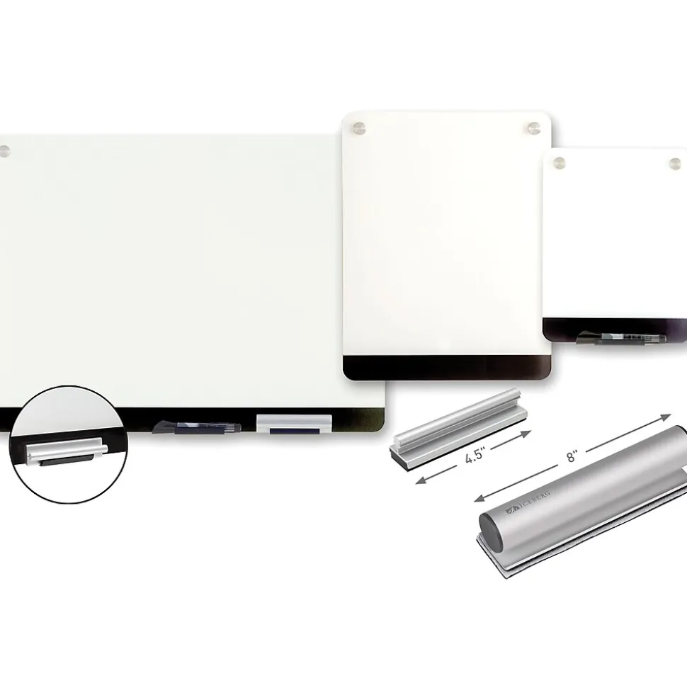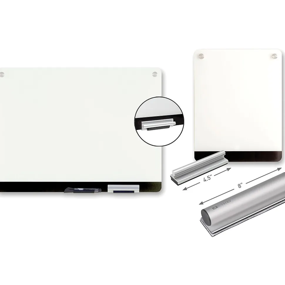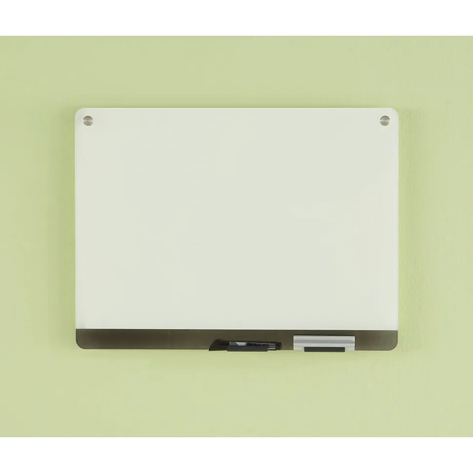 Tempered glass surface and ultra-white backing provide the ultimate high-contrast, non-ghosting, non-staining writing surface. Clarity personal glass dry erase boards are ideal for any environment and easily mount with aluminum brackets, seemingly float ing against the wall with its modern, frameless design.
