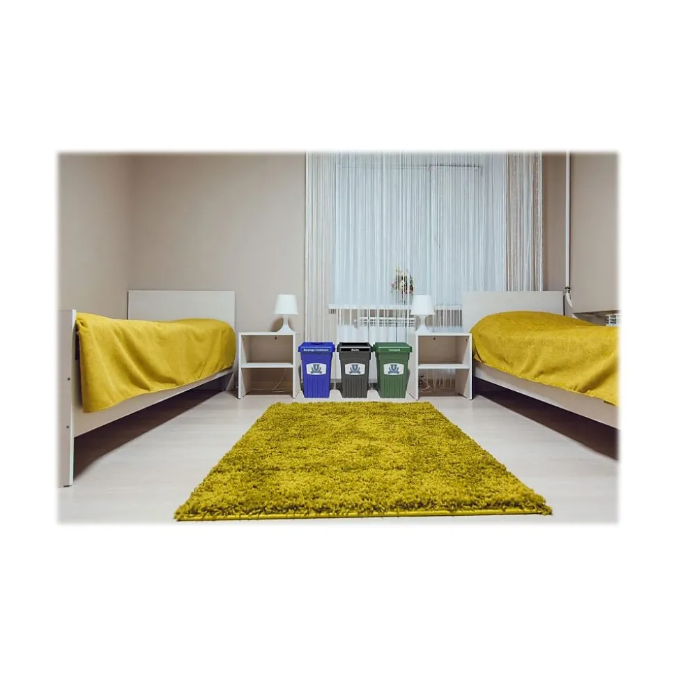 - Compact waste bin is perfect for office, health-care, dorm, or residential environments