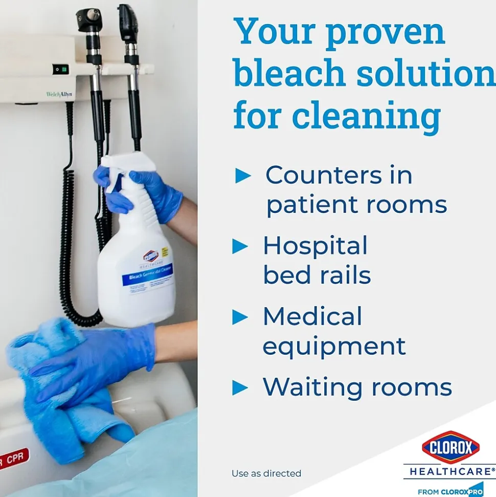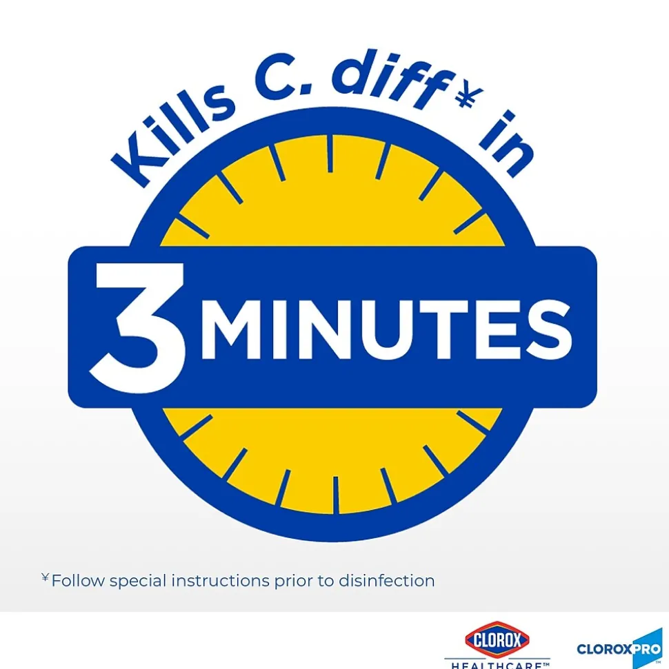 - GERMICIDAL BLEACH: Clorox HealthcareBleach Germicidal Cleaner is a ready to use one-step cleaner disinfectant; EPA registered to kill C.Difficile spores in 3 minutes and 49 other microorganisms in 1 minute