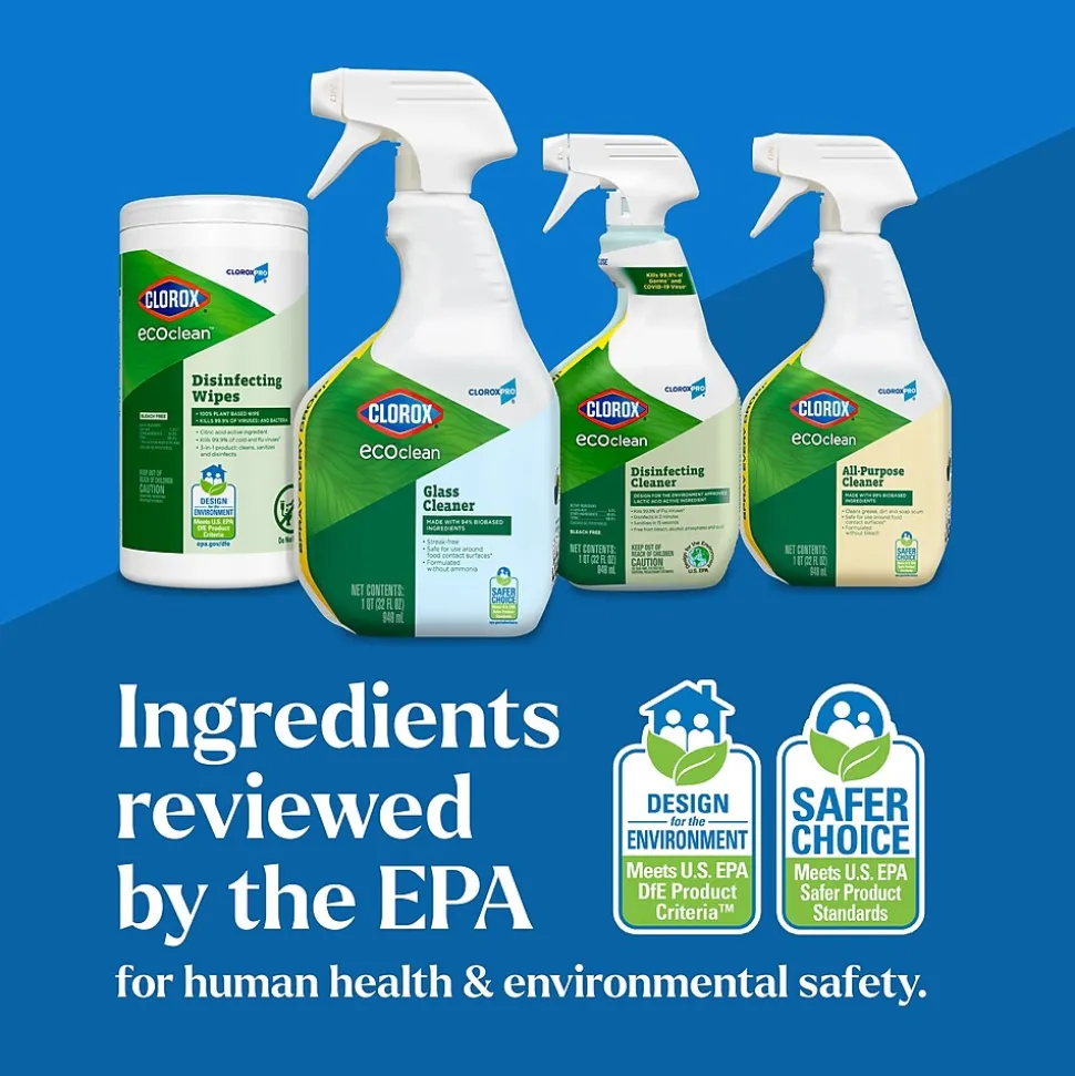 - CLOROX GLASS CLEANING SPRAY: Clorox EcoClean Glass Cleaner cuts through filmy residue and is safe on multiple surfaces throughout the home and office