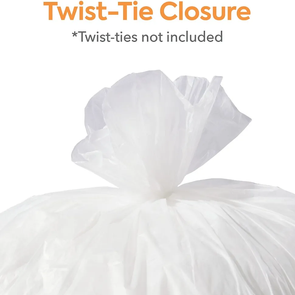 Stock the supply closet with these sturdy trash bags. A narrow carton facilitates vertical or horizontal storage, and coreless packaging allows one-at-a-time dispensing. High-density plastic construction contains paper objects, and the star-sealed bottom helps level trash, so bags slip out of the waste bin without rupturing. These Coastwide Professional 20 to 30-gallon trash bags feature a natural resin build for easy viewing before disposal, eliminating loss.