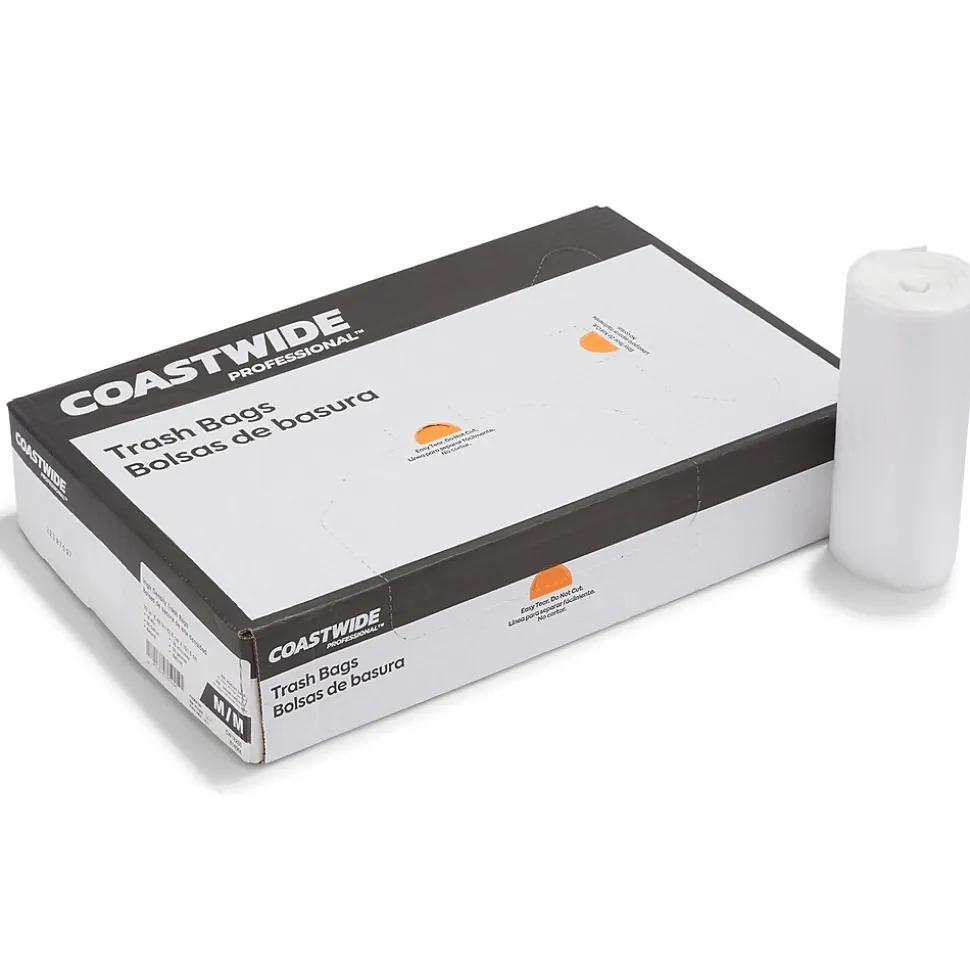 Make disposing of waste easier with these trash bags. The high-density construction offers impressive lifting strength, which is ideal for throwing away heavy or wet items. The natural material lets you inspect contents to help prevent theft and accidental disposal. These Coastwide Professional™ high-density trash bags fit easily in most medium to large trash receptacles for quick maintenance.
