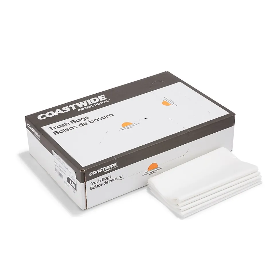 Reduce the risk of messes and spills around your workplace with these clear trash bags. The star-sealed bottom distributes weight evenly to optimize carrying capacity, while the low-density polyethylene prevents holes from stretching to avoid leaks. These 40 to 45-gallon Coastwide Professional™ low-density trash bags are 2-mil thick to resist tearing or puncturing by sharp objects, ensuring safe waste disposal, and are packaged in a carton of 100 for an ample supply.