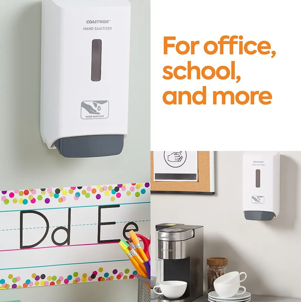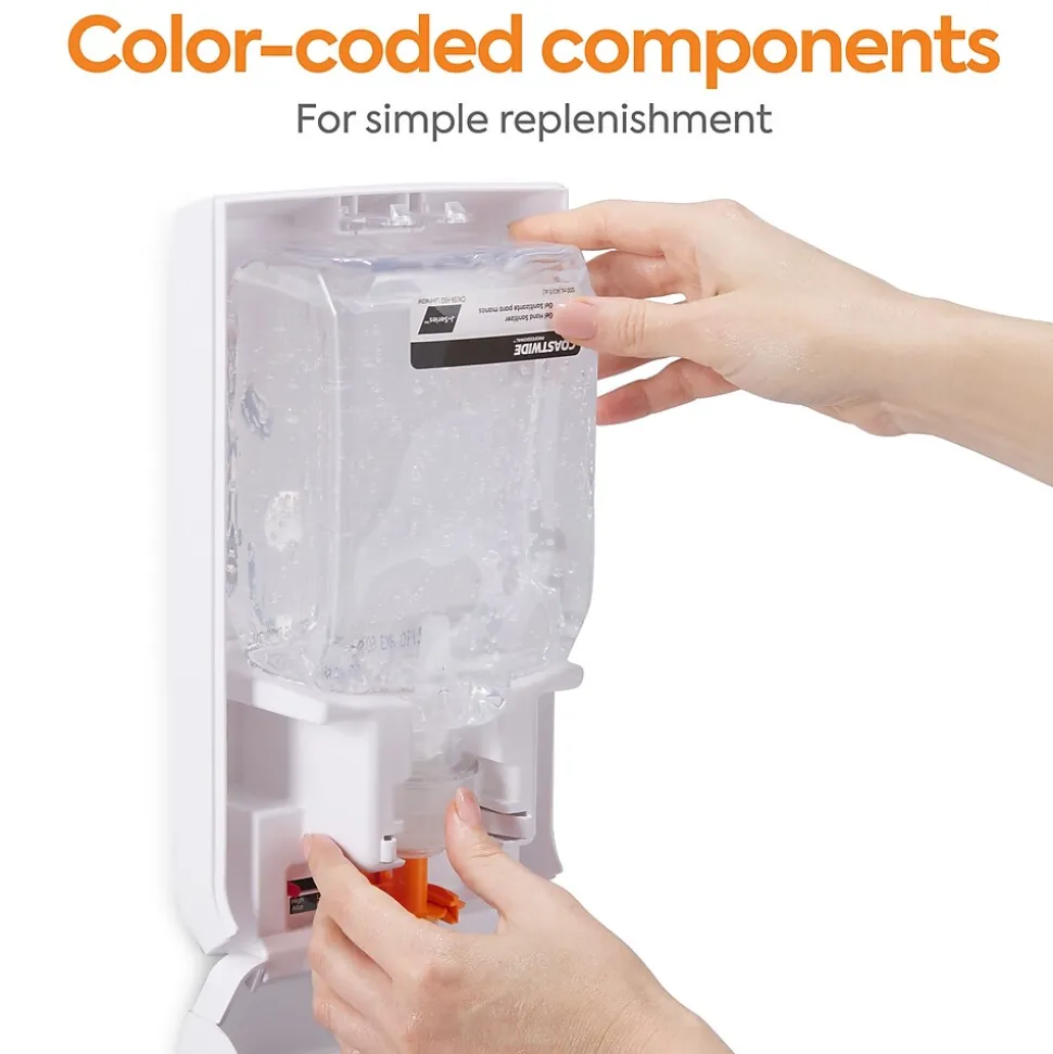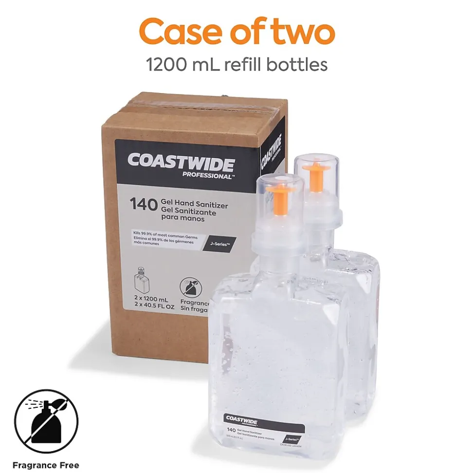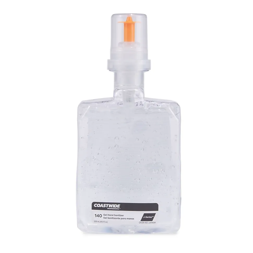 Maintain a hygienic workplace with these gel hand sanitizers. Compatibility with both the manual and automatic J-Series sanitizer dispensers lets you regulate the dispensing of foam and gel sanitizers, and the color-coded interior offers a visual guide for easy identification. These Coastwide Professional J-Series gel hand sanitizers contain 70% ethyl alcohol to deter the spread of germs, while the two-refill carton keeps your supply closet stocked.