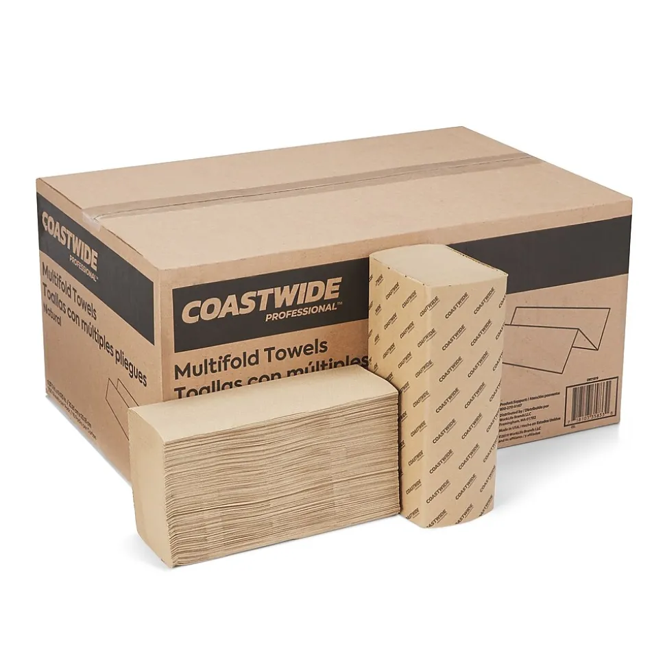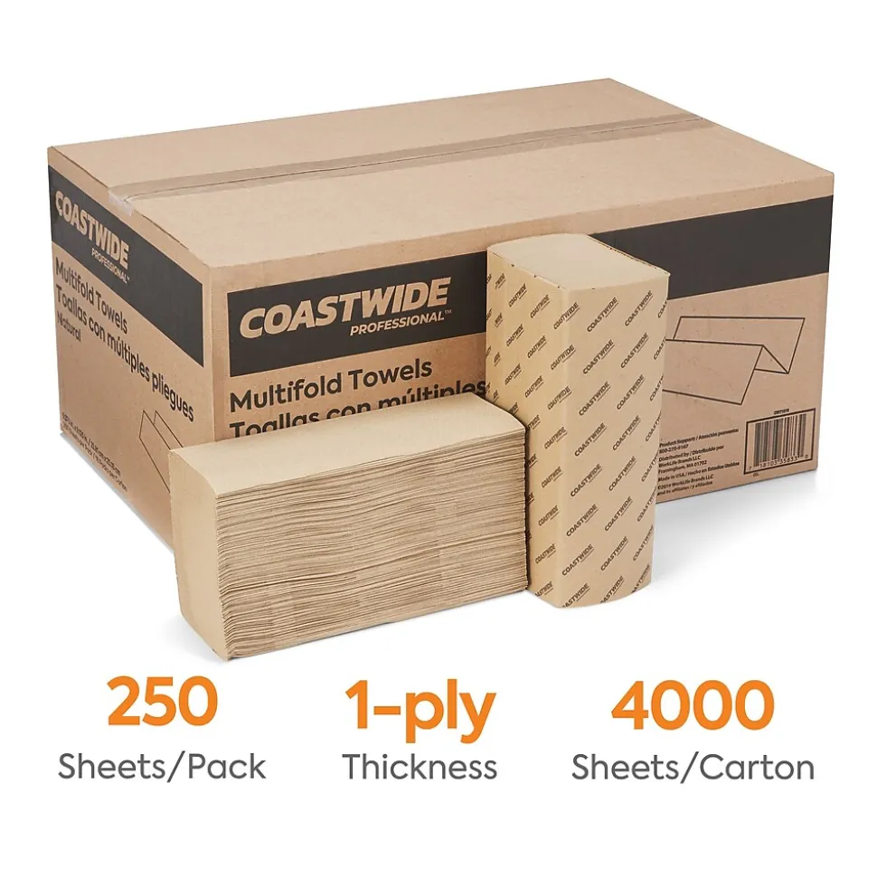 Designed for use in commercial workplaces and public restrooms, these Coastwide Professional™ one-ply paper towels fit neatly into dispensers for convenient access. Simply remove the outer wrapping on each bundle and place the towels in your dispenser. Add these sturdy, absorbent sheets in breakrooms and dining areas to clean up spills, or keep them in the office’s restrooms to promote cleanliness in the workplace. Each package contains 4,000 folded paper towels, which ensures a plentiful supply for your office. This reduces the amount of time spent reordering supplies, so you can focus on more important day-to-day operations.