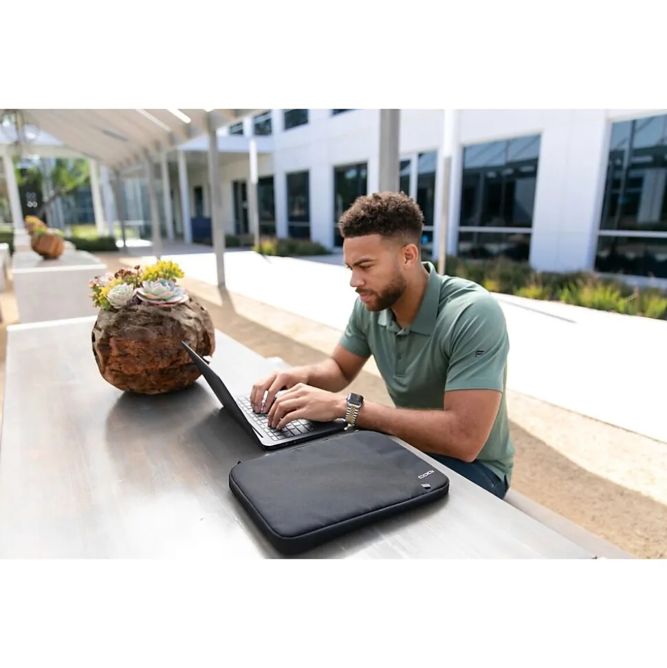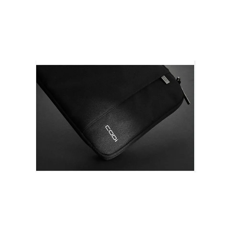 Protect your Chromebook device with the Aegis Chromebook Sleeve from CODi. Our durable and water-resistant cases deliver superior protection. Wear and tear? Not with these. Engineered and designed with durable 1680 Polyester PU PVC, your Chromebook is sure to survive all bumps and scratches. The built-in go-handle makes it easy to pick up and get moving in any environment. The front zipper pocket can store your valuables such as your charging cables, apple pencil, and any other items like keys or cell phones. A slim design allows for comfortability and easy storage in a backpack.