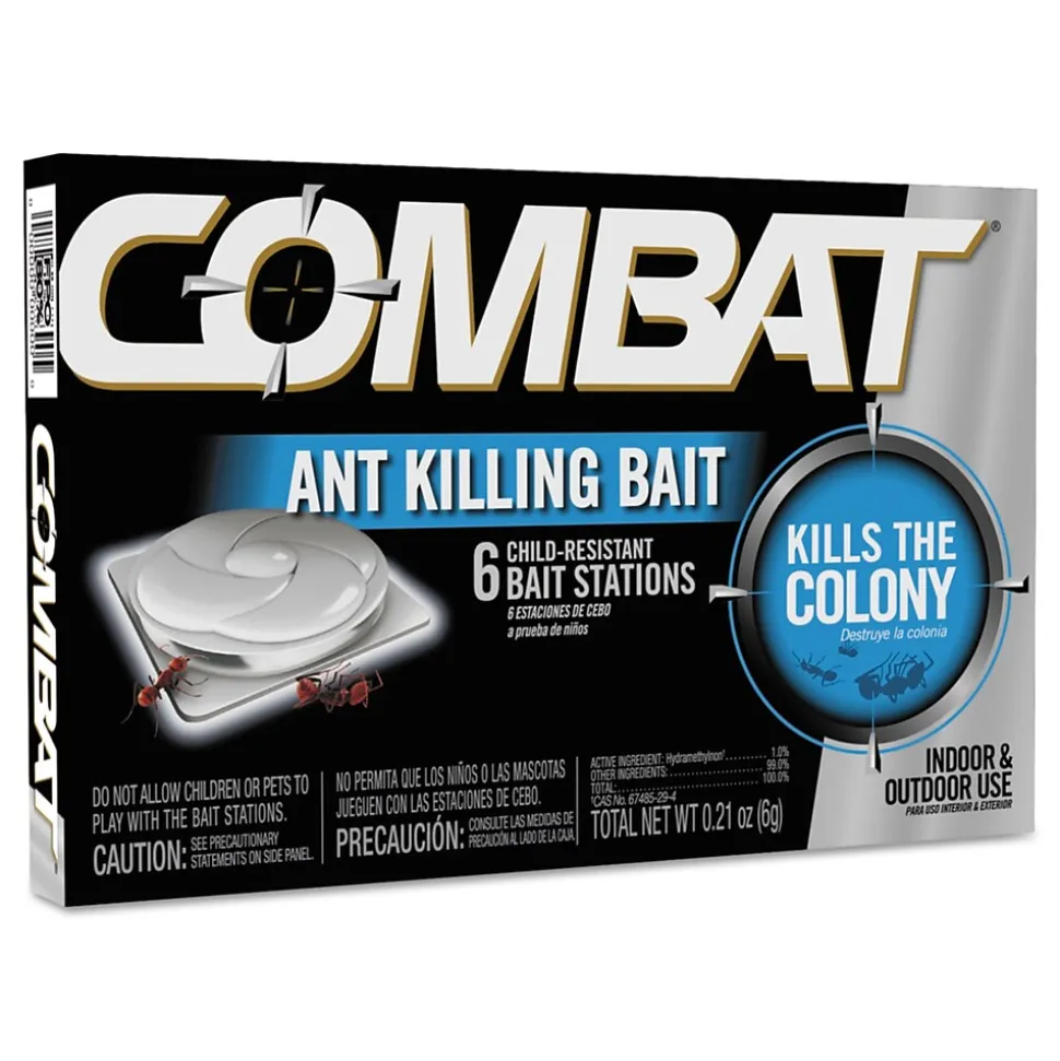 - Combat uses Hydramethylnon, a slow acting poison that pests ingest, in bait stations