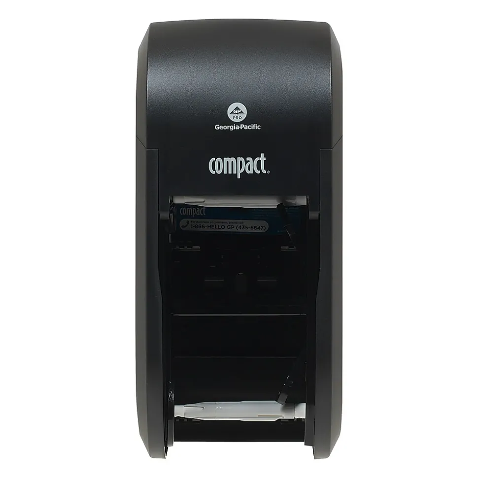 Compact® coreless toilet paper dispensing systems answer key needs for facilities managers when it comes to toilet paper for the restrooms. These high capacity systems help you avoid running out between service intervals and help reduce maintenance time typically spent changing out conventional toilet paper rolls. These systems save up to 95% in packaging waste compared to GP PRO’s standard roll toilet paper by eliminating stub-rolls, corrugate cores, paper roll wraps and the outer cardboard shipping case. And because the Compact® case has a smaller footprint, it requires less storage space. Compact® coreless toilet paper dispensers are designed to give the facility high capacity for continuous service. GP PRO is a division of Georgia-Pacific Consumer Products. We deliver well-designed, durable and easy-to-maintain professional solutions to meet the handwashing and cleaning needs for a range of business applications.