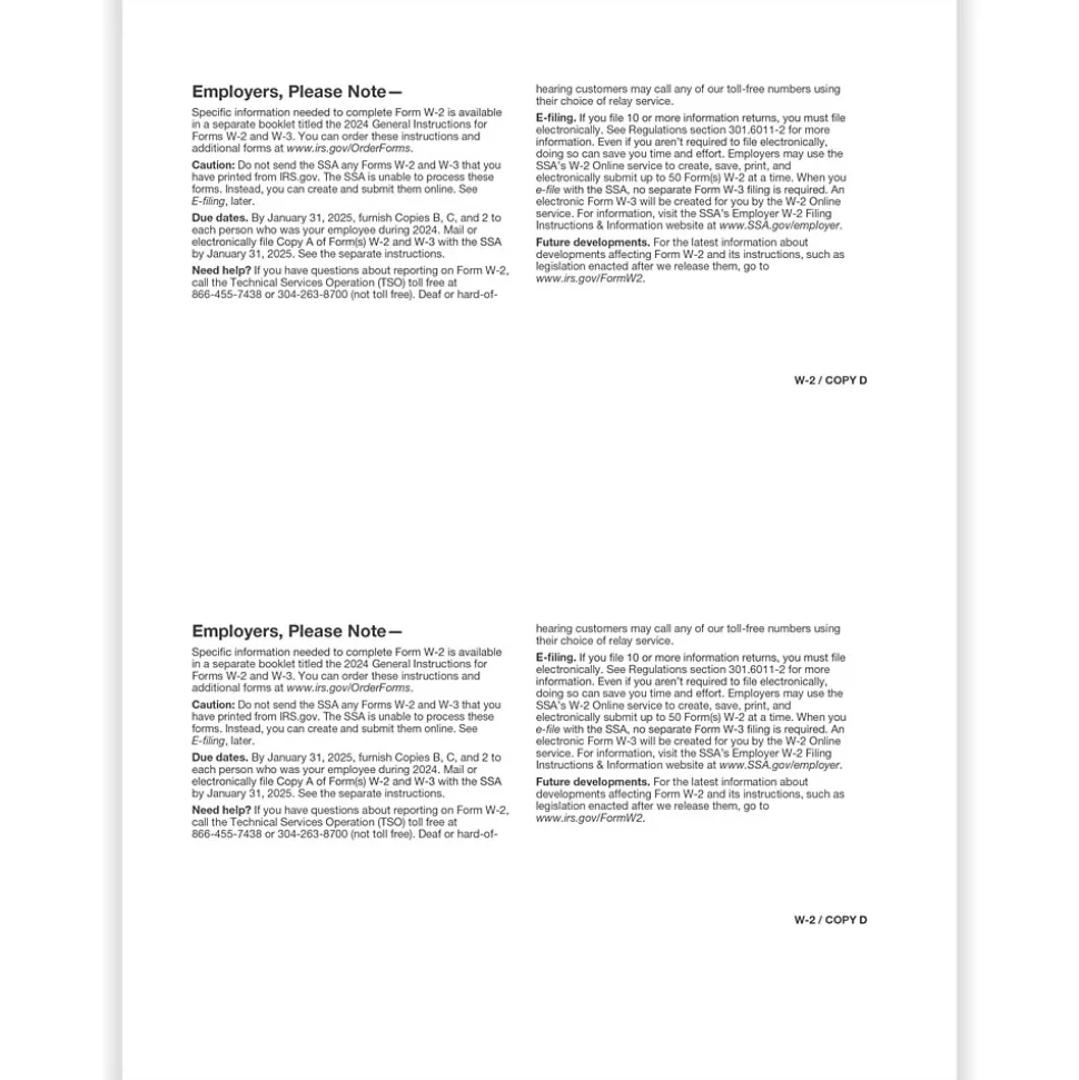 - Single-part, 2-up: Employer Copy D and/or State, City, or Local Copy 2
