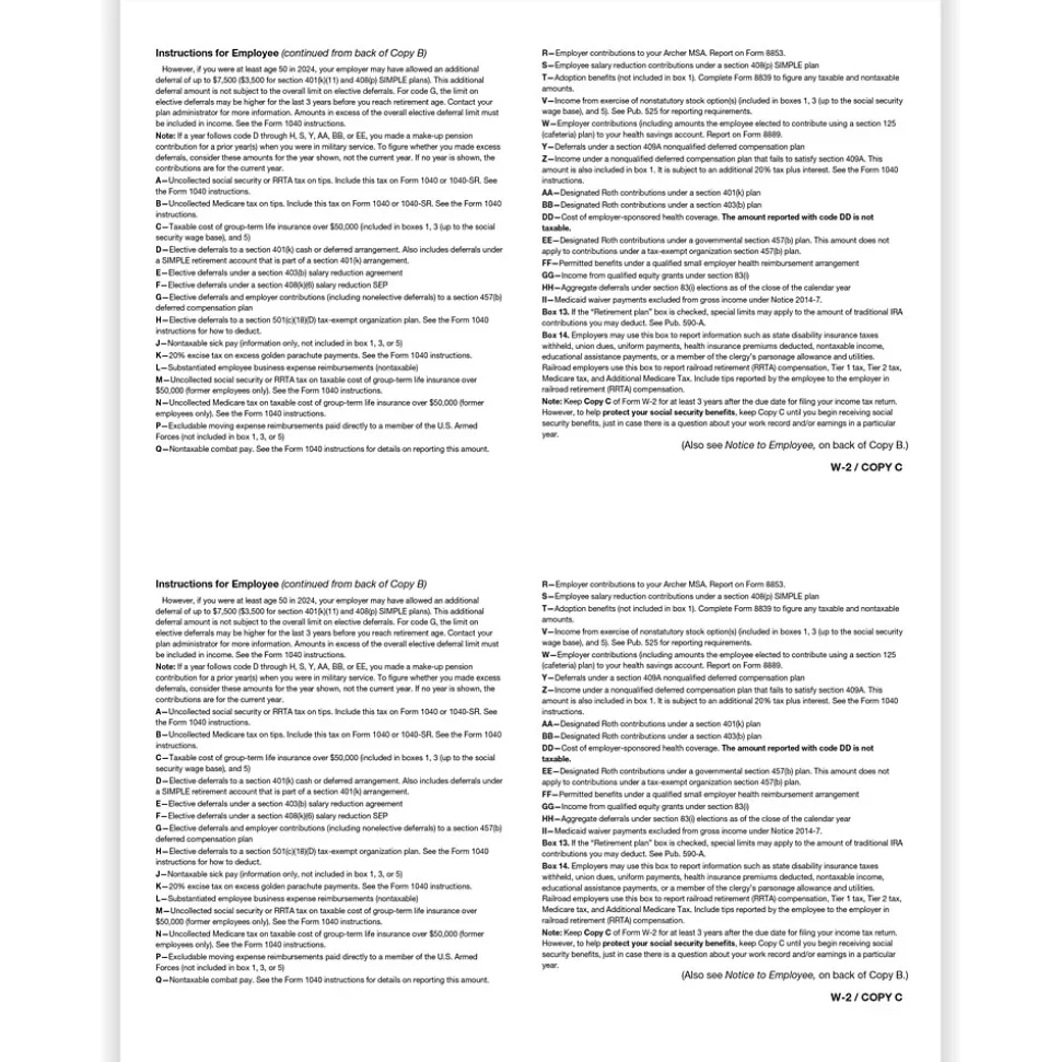 - 2-up: Employee Copy C and/or State, City, or Local Copy 2