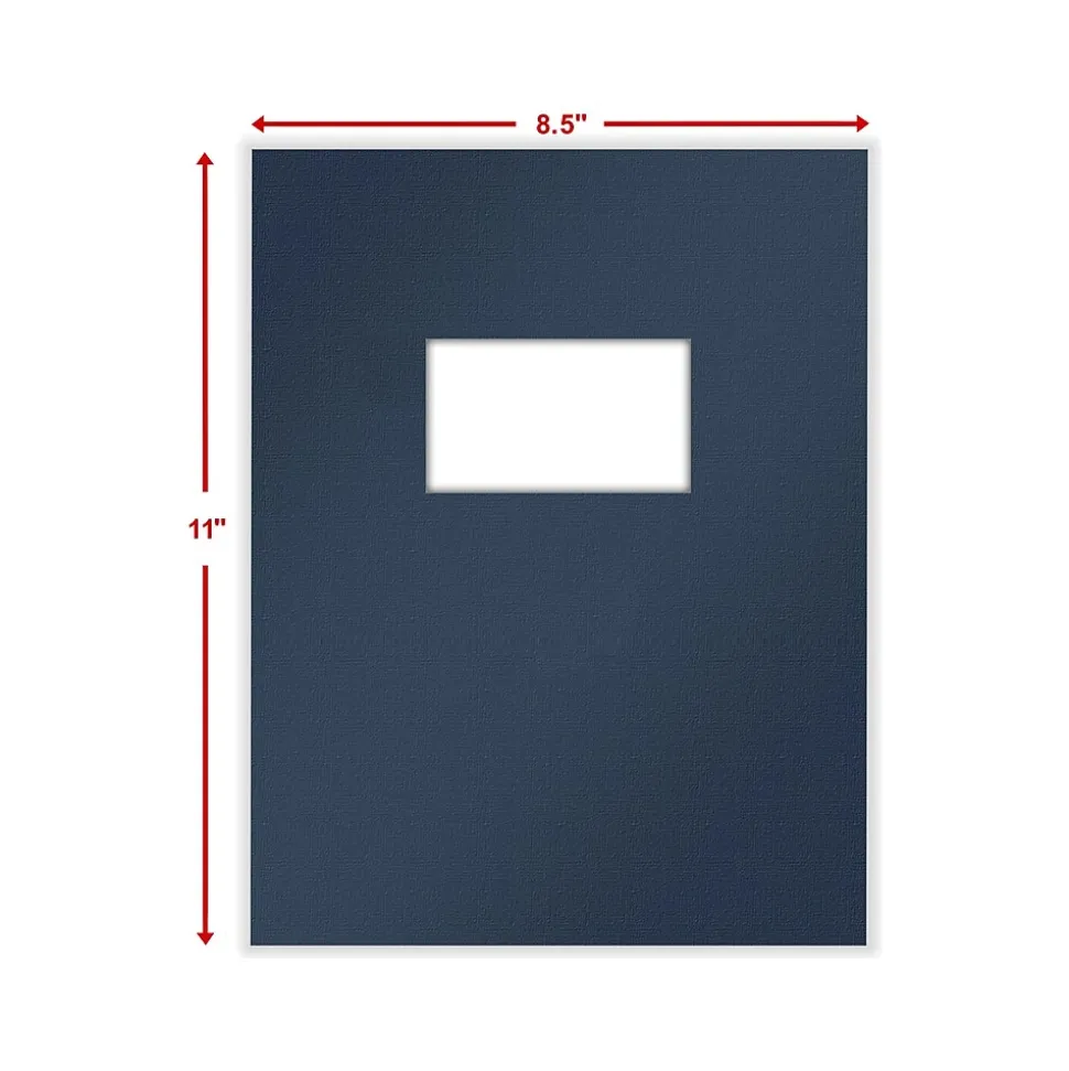 - Single-window presentation folder in navy blue; 50 folders per pack
