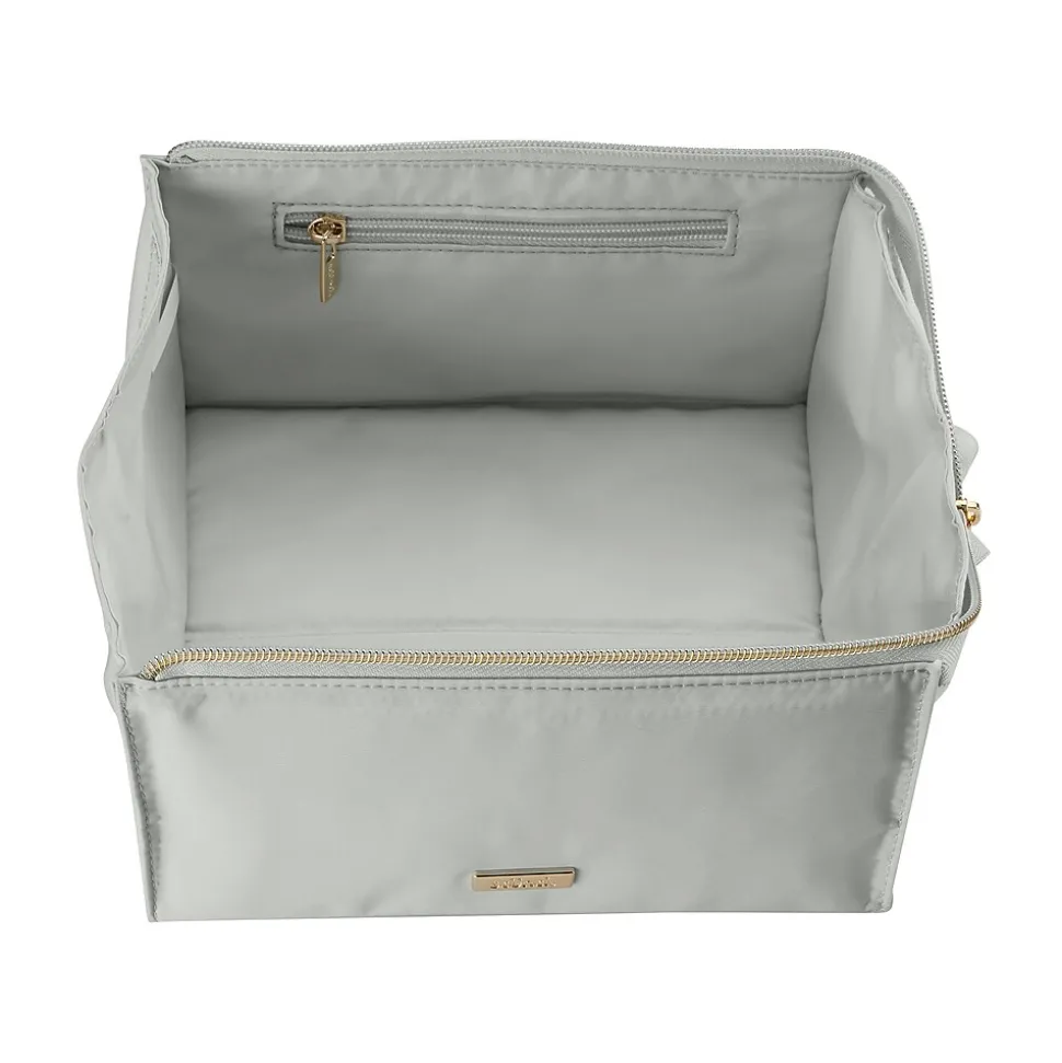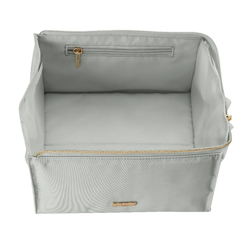 - Bag unzips and folds to a flat tray so all your essentials are easily visible and accessible