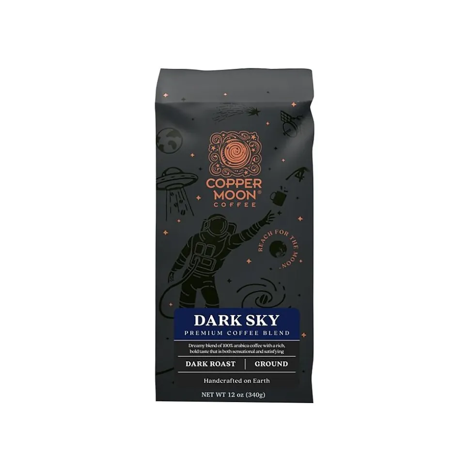 Copper Moon Dark Sky premium coffee blend is a dreamy blend that is evenly roasted to the color of the night sky. Each cup displays beautifully crafted flavors and a strong, bold taste that is simply out of this world.