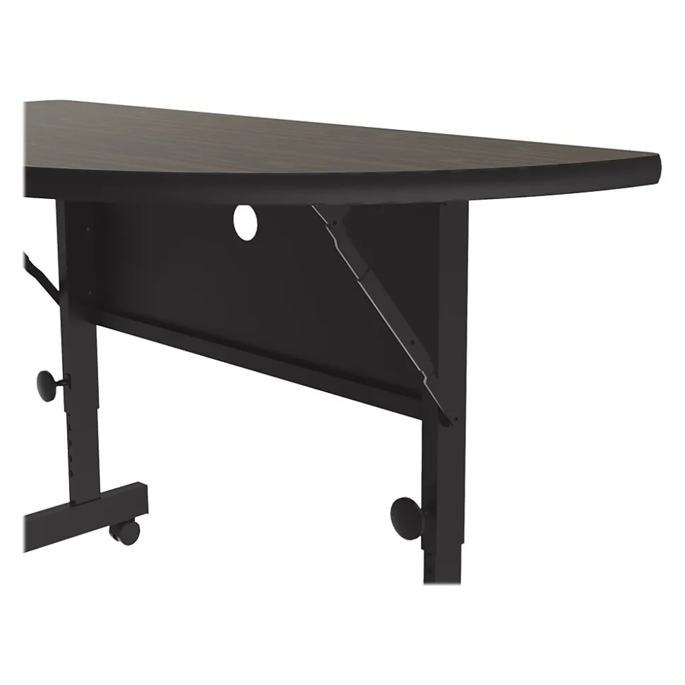 This mobile nesting option allows for easy fold-up and compact storage. The design allows for easy setup, configuration, take-down, and storage. Ideal for heavy-duty use in schools, universities, offices, hotels, training rooms, and conference areas. The thermal fused laminate top is water-, stain-, and dent-resistant.