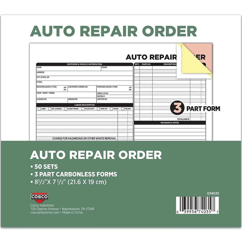 - Size: 8.5 x 7.44 inches, perfect for recording detailed auto repair orders.