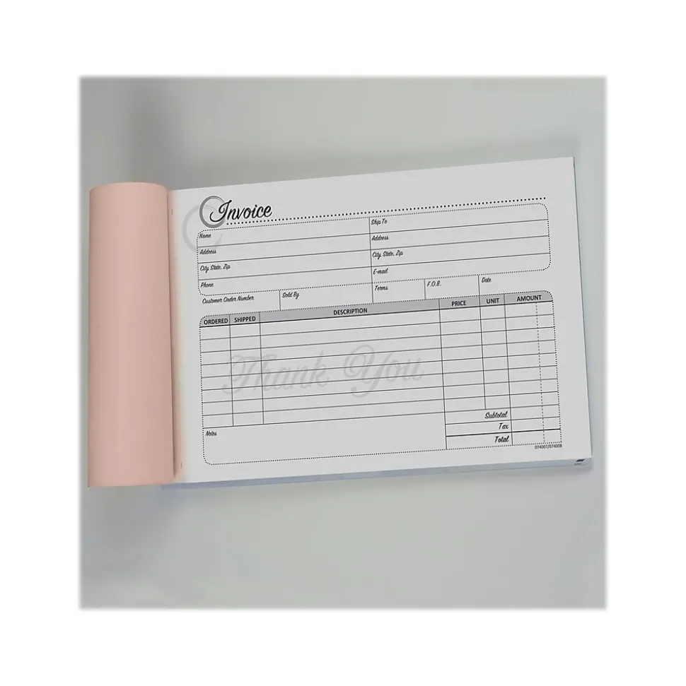 - Features a carbonless three-part format and comes in white, canary, and pink