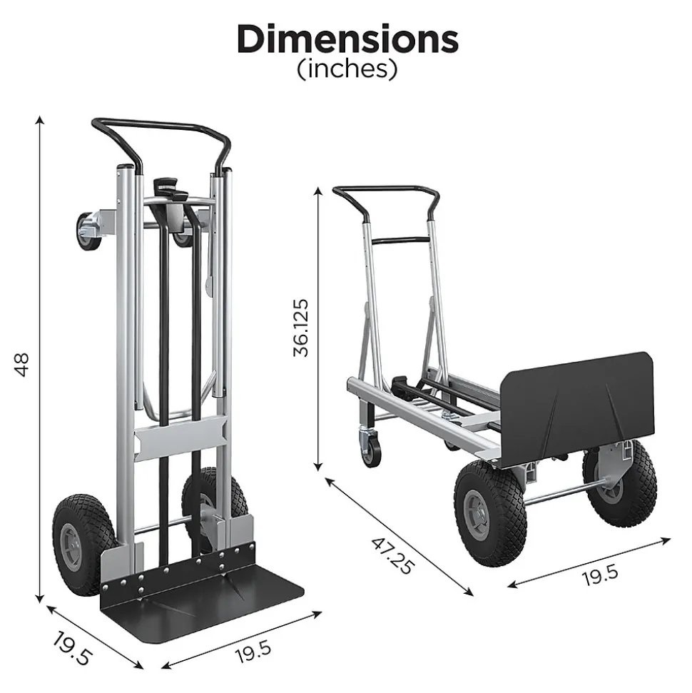 - 1000 lb. load capacity as 4-wheel cart, 800 lb. load capacity as 2-wheel hand truck