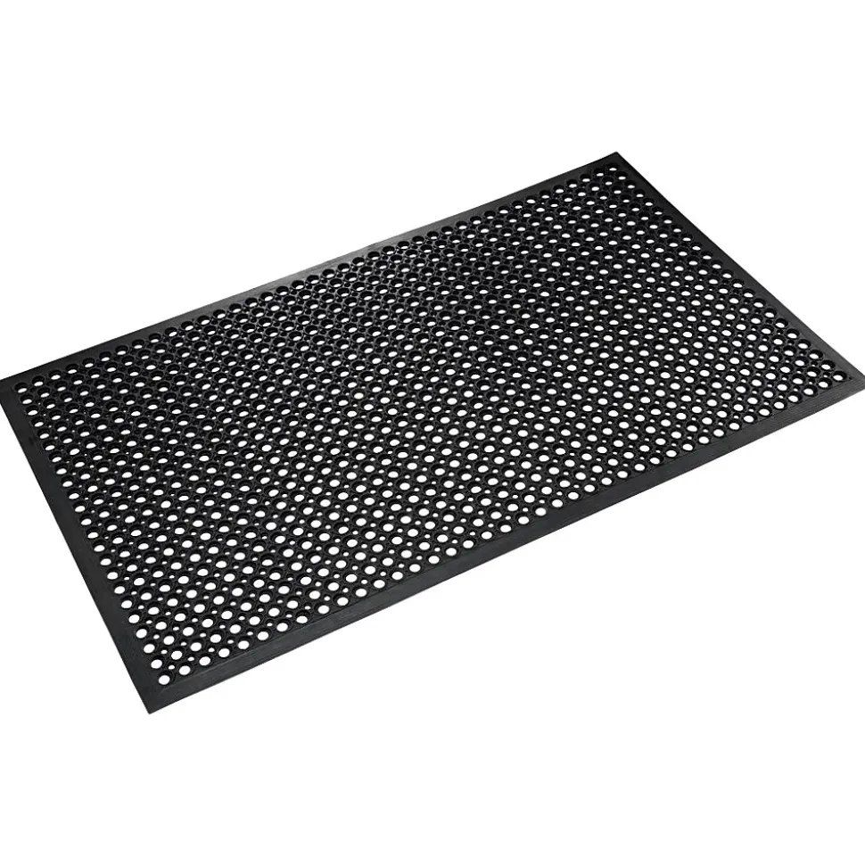 - Rectangular floor mat in black with circular drain through holes