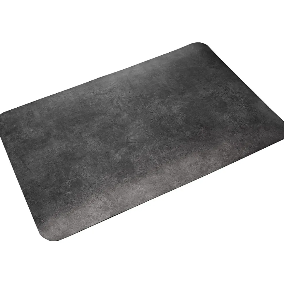 - Rectangular floor mat in dark gray features a smooth granite-style top surface