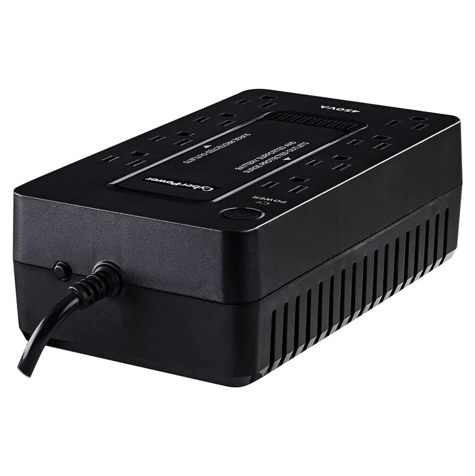 The CyberPower SE450G1 uninterruptible power supply (UPS) system provides surge protection for lightning-induced surges and other power events that can damage electronic equipment. This unit delivers enough battery backup to connected electronics during a utility power failure, so you can perform a graceful shutdown to protect against the loss of data and damage to valuable electronics including computers, gaming consoles, and broadband routers. Including a sleek new design, this UPS is perfect for all your home office and entertainment needs.