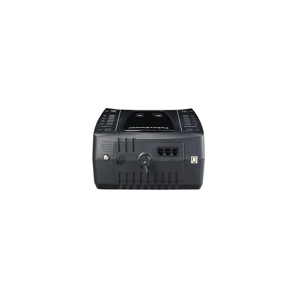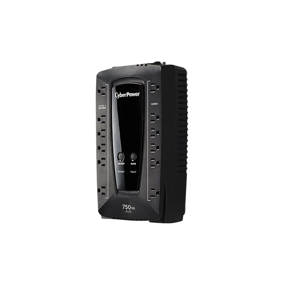 The CyberPower AVR Series AVRG750U uninterruptible power supply (UPS) safeguards PCs and other electronics (monitors, cable DSL/ modems, VoIP routers, and home theater devices) from blackouts, brownouts, surges, spikes, sags, and other power abnormalities. Its Automatic Voltage Regulation (AVR) boost/buck technology delivers a consistent and clean AC power, protecting connected equipment and preventing costly business interruptions. Its composite integrated circuitry offers advanced lightning protection. This UPS system is ENERGY STAR qualified with patented GreenPower UPS Bypass circuitry to save on energy costs by reducing energy consumption and heat buildup. The AVRG750U unit has a capacity of 750VA/450Watts, twelve (12) NEMA 5-15R receptacles, including, six (6) battery and surge protected and six (6) surge protected outlets. Its compact design allows for horizontal or vertical placement, or it can be mounted on a wall. This UPS has a 12-volt maintenance-free sealed lead acid battery. Protection for phone/network (RJ11) is also included. EMI/RFI filters increase the immunity of the load to disturbances and surges. A HID compliant USB port provides connectivity to the AVRG750U. PowerPanel Personal Edition UPS Management software is included to monitor the vitals of the UPS and will safely shutdown the system in case of a power outage. A Three-Year Warranty ensures that this UPS has passed our highest quality standards in design, assembly, material or workmanship and further protection is offered by a $150,000 Connected Equipment Guarantee.