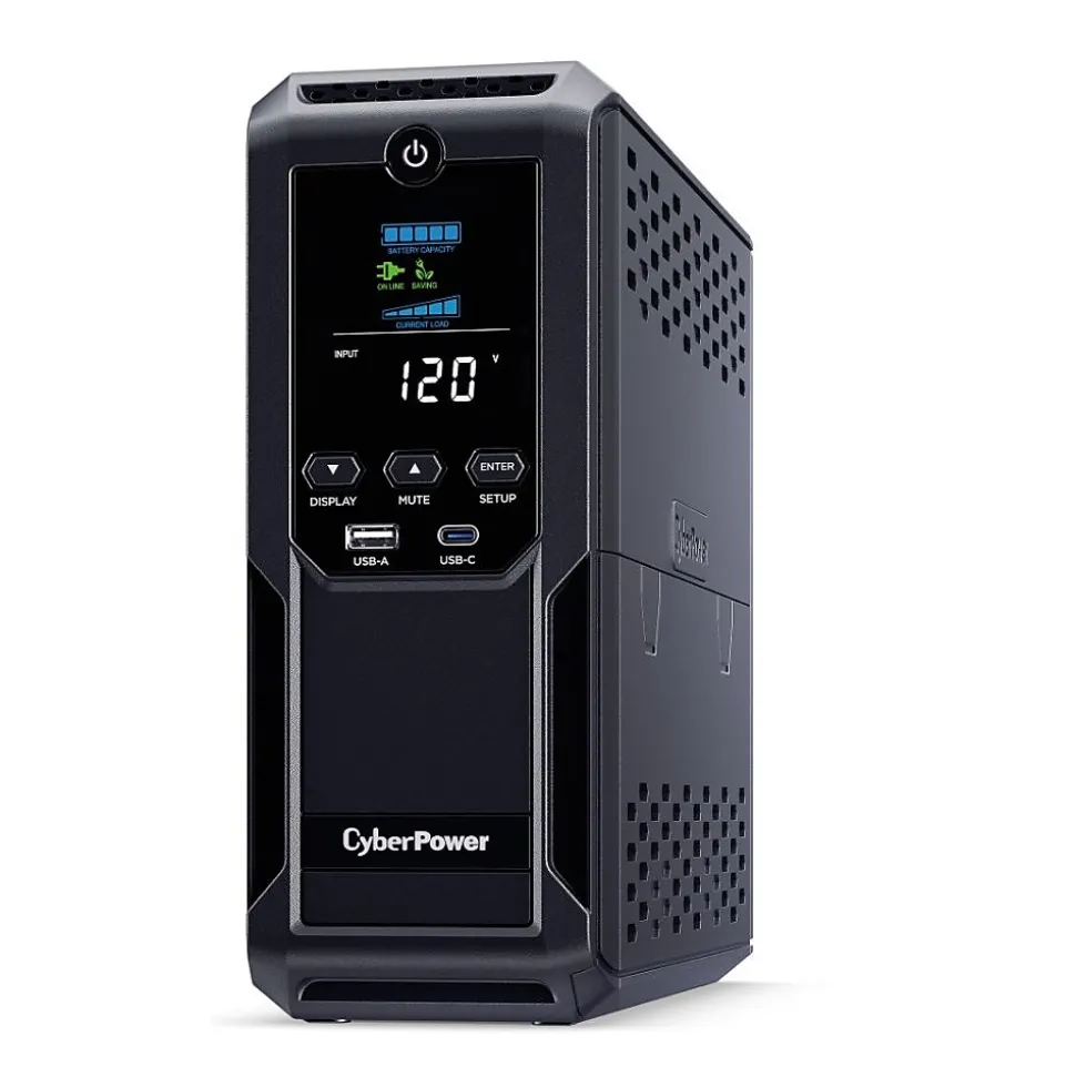 1500VA/900W Intelligent LCD Battery Backup Uninterruptible Power Supply (UPS) System uses simulated sine wave output to safeguard workstations, networking devices, and home entertainment equipment