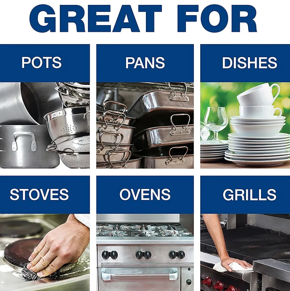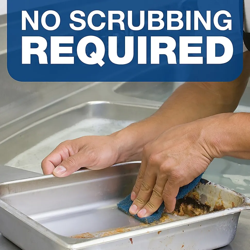 - As you rinse, grease and burnt-on food messes literally slide off, leaving you with a like-new clean on pots and pans