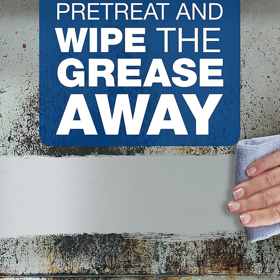- Spray grease cleaner is ideal for baked-on or burnt-on grease on pots and pans, dishes, stoves, ovens and grills