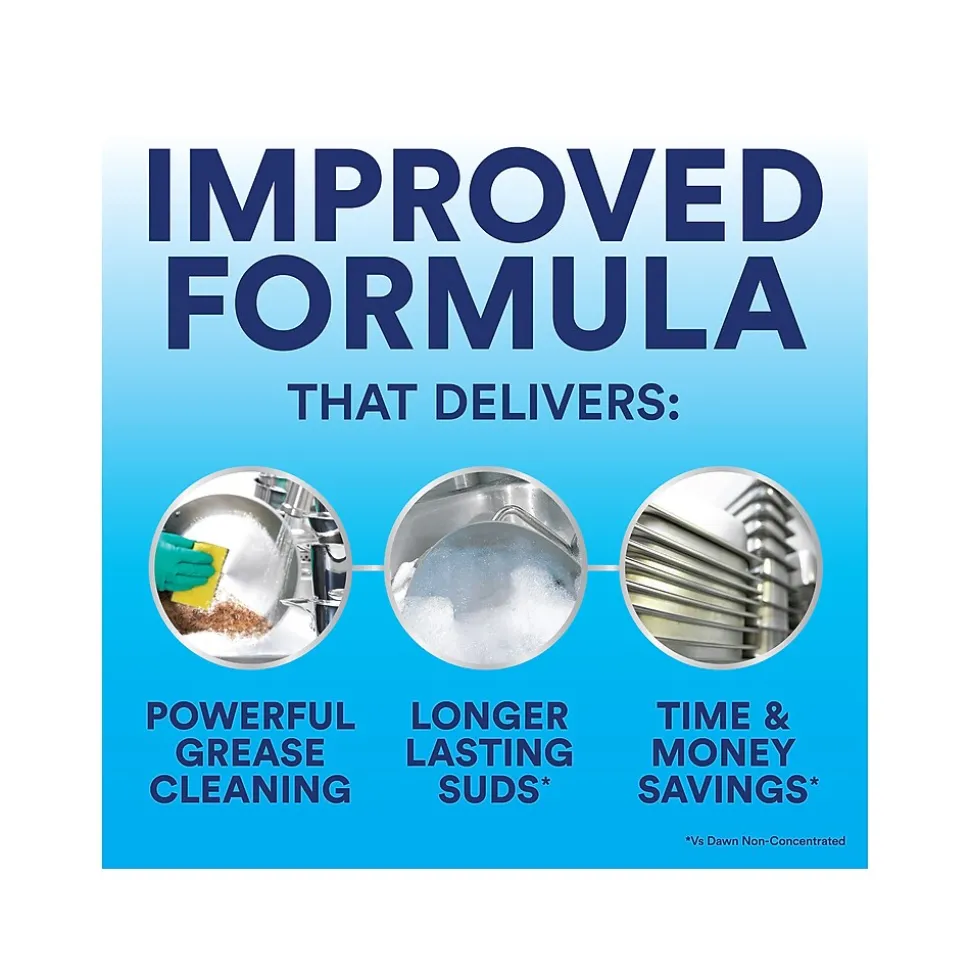 The Dawn Professional manual pot and pan detergent is a highly concentrated liquid dishwashing soap specifically formulated to help remove greasy food soils from pots, pans, utensils, and other wares at your business. This liquid dish soap’s mix of proprietary surfactants cleans double the pots and pans per sink with two times longer-lasting suds, so you and your business save time and money.