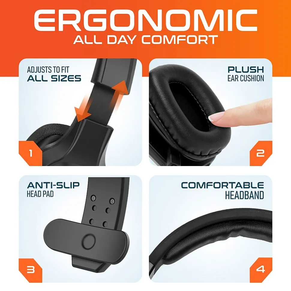 - This black headset is ergonomically designed with soft memory foam earcups, an extendable cushioned headband, and intuitive controls