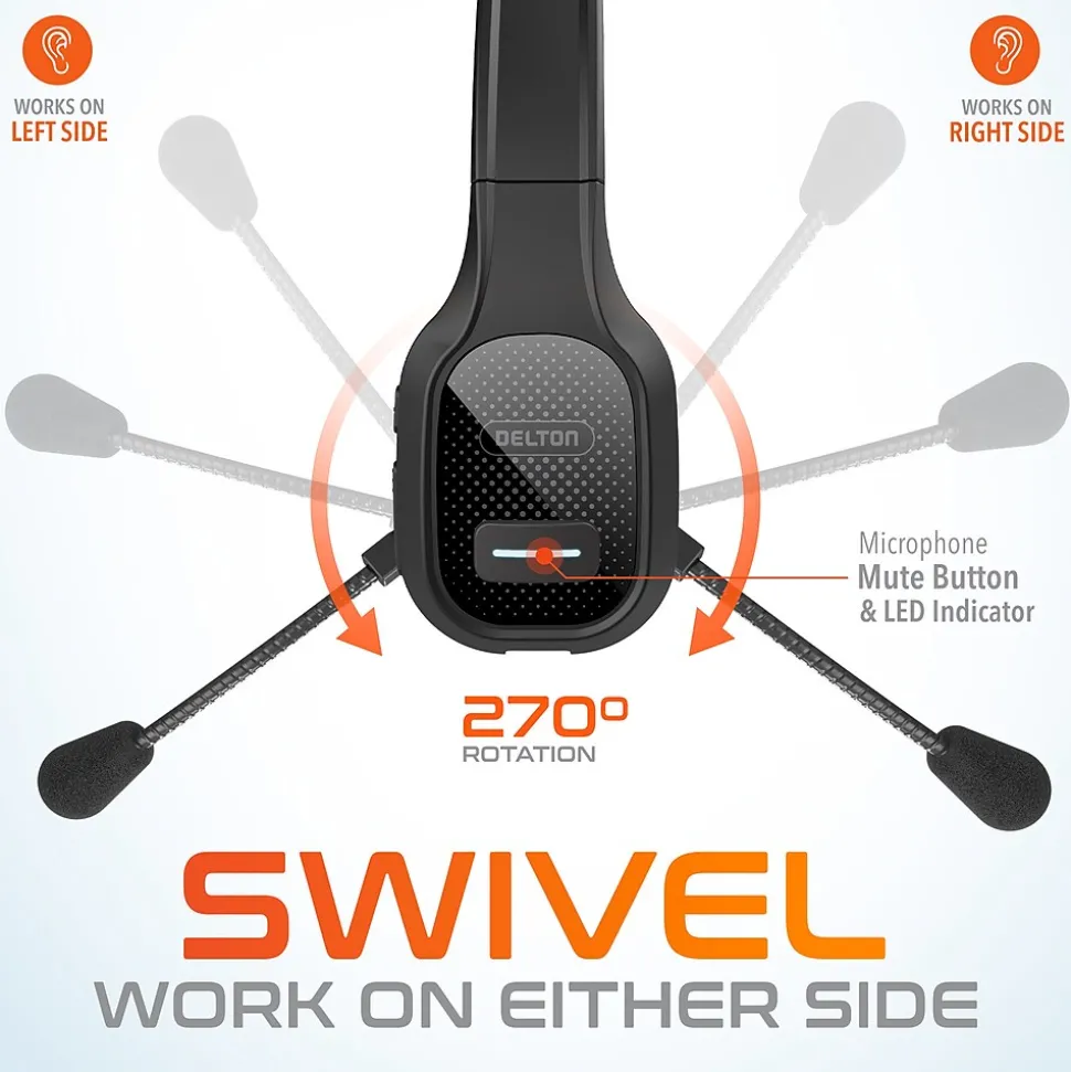 - Noise cancelling boom mic rotates 270-degrees, so you can comfortably work on either your left or right ear